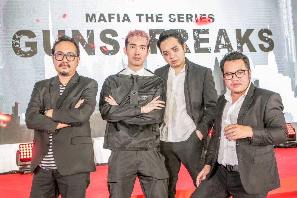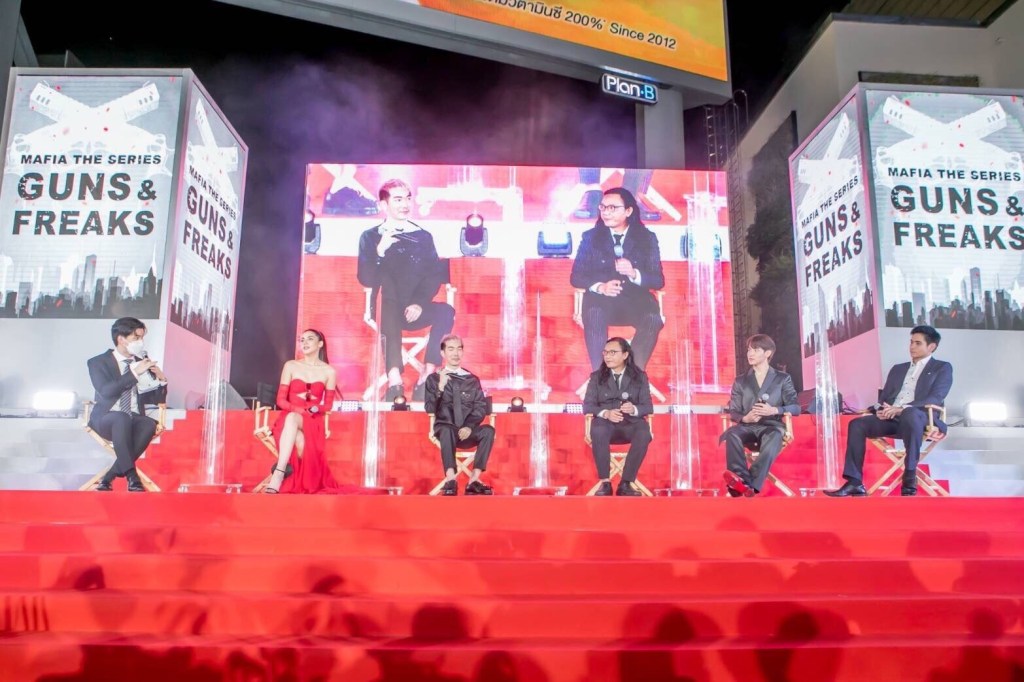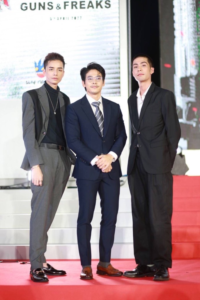 ผมขอฝาก Mafia The Series: Guns & Freaks (มาเฟียเดอะซีรีส์ ปืนกลและคนเพี้ยน) ให้ทุกคนได้ติดตามชมกันนะครับ เป็นผลงานที่พวกเราทุกคนตั้งใจทำกันจริงๆ พวกเราใส่ไปกันจนสุดแม็กแล้วครับ เป็นซีรีส์ที่แหกทุกกฎการเขียนบทและกฎการกำกับทั้งหมดทั้งมวลแล้วครับ ทุนสร้างทั้งหมดอยู่ที่ 45 ล้านบาท เพราะเราเลือกสิ่งที่ดีที่สุด ทีมที่ดีที่สุด ทั้งเรื่องแอ็คชั่น ก็ให้ทีมพันนาสตั๊นท์ เป็นฝ่ายดูแลทั้งหมด อุปกรณ์ที่เข้าฉากไม่ว่าจะเป็นปืน ดาบซามูไร หรืออุปกรณ์อื่นๆ เราก็ให้ทีมลอร์ด ออฟ เดอะ ริง เป็นคนผลิตให้ ก็อยากให้ได้ชมกันครับ”