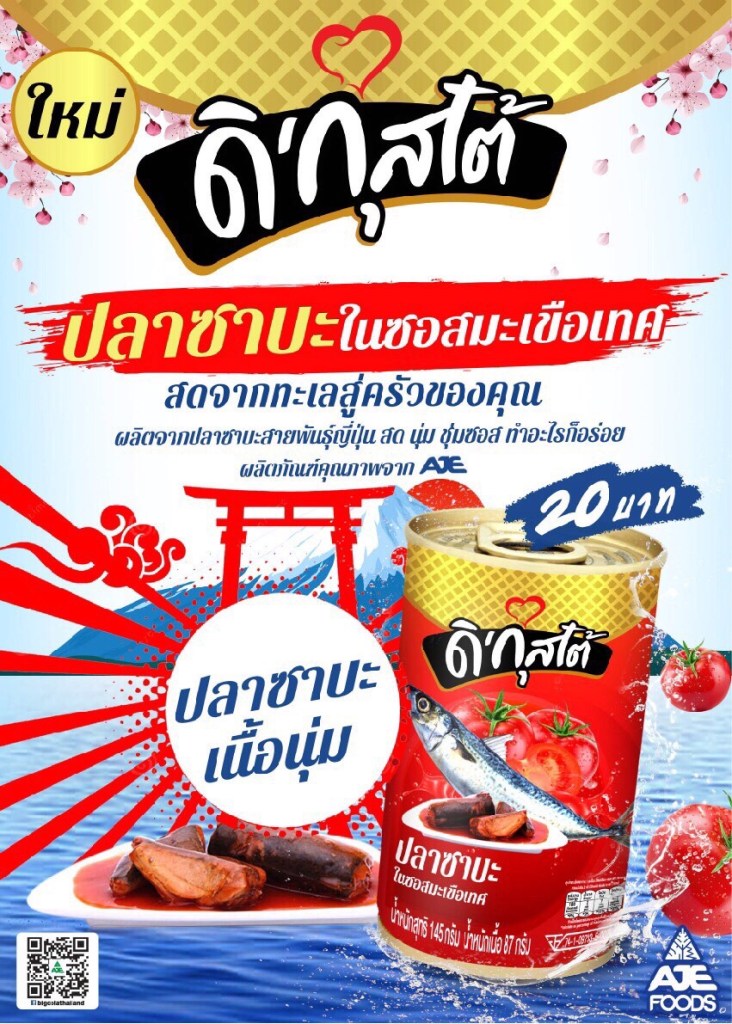 “วันนี้เรายินดีที่จะแนะนำสินค้าในกลุ่มอาหารของอาเจ ภายใต้แบรนด์ “ดิ’กุสโต้ (D’Gussto)” โดยได้เปิดตัวปลาซาบะในซอสมะเขือเทศเกรดพรีเมียม เราเห็นว่าตลาดปลากระป๋องในประเทศไทยนั้นยังมีโอกาสเติบโต และเราก็มองหาวิธีสร้างความตื่นตาตื่นใจให้กับผู้บริโภคอยู่เสมอ เหตุผลที่ทำไมเราถึงได้เปิดตัวปลาซาบะกระป๋อง ดิ’กุสโต้ ออกสู่ตลาด ก็เพราะเป็นปลาซาบะในซอสมะเขือเทศเกรดพรีเมียมเพียงแบรนด์เดียวที่มีราคาที่แข่งขันได้เมื่อเทียบกับปลาซาร์ดีนหรือปลาแมคเคอเรลในกระป๋องที่วางจำหน่ายอยู่ในตลาด”
