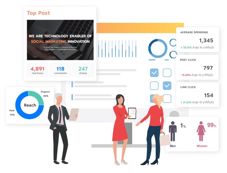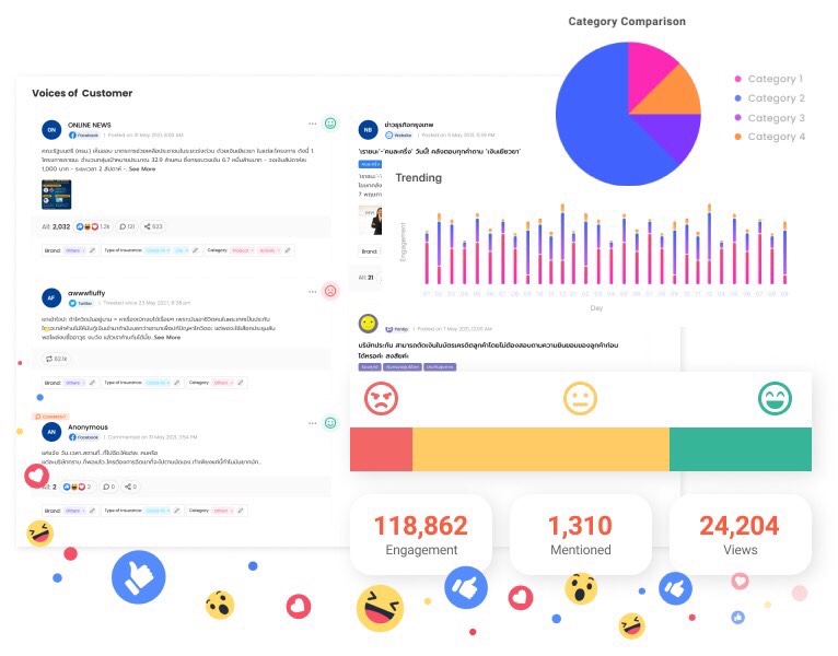 1. การวิเคราะห์ข้อมูลอย่างแม่นยำ 360 องศา (Planning Solutions) ผ่านบริการ social research ที่ครบทุกมิติแบบเรียลไทม์ ทั้งข้อมูลลูกค้า คู่แข่ง และตลาด