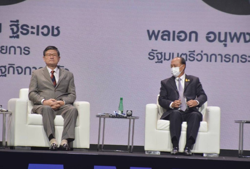 นายวราวุธ ศิลปอาชา รัฐมนตรีว่าการกระทรวงทรัพยากรธรรมชาติและสิ่งแวดล้อม นำทีมผู้บริหารภาครัฐและเอกชนร่วมเสวนาในหัวข้อ “สิ่งแวดล้อมยุคใหม่ เติบโตไปพร้อมกับเศรษฐกิจ” เผยถึงการบริหารจัดการที่เป็นมิตรต่อสิ่งแวดล้อมมากขึ้นในทุกภาคส่วน การหาโมเดลธุรกิจใหม่เพื่อลดโลกร้อน เพิ่มพลังงานสะอาด เยียวยาระบบนิเวศ โดยมีเป้าหมายในการทำให้เศรษฐกิจและสิ่งแวดล้อมเติบโตร่วมกันได้ และบรรลุเป้าหมายในการทำให้คุณภาพชีวิตดีขึ้น และพร้อมส่งมอบสิ่งแวดล้อมคุณภาพดีให้คนรุ่นต่อไป