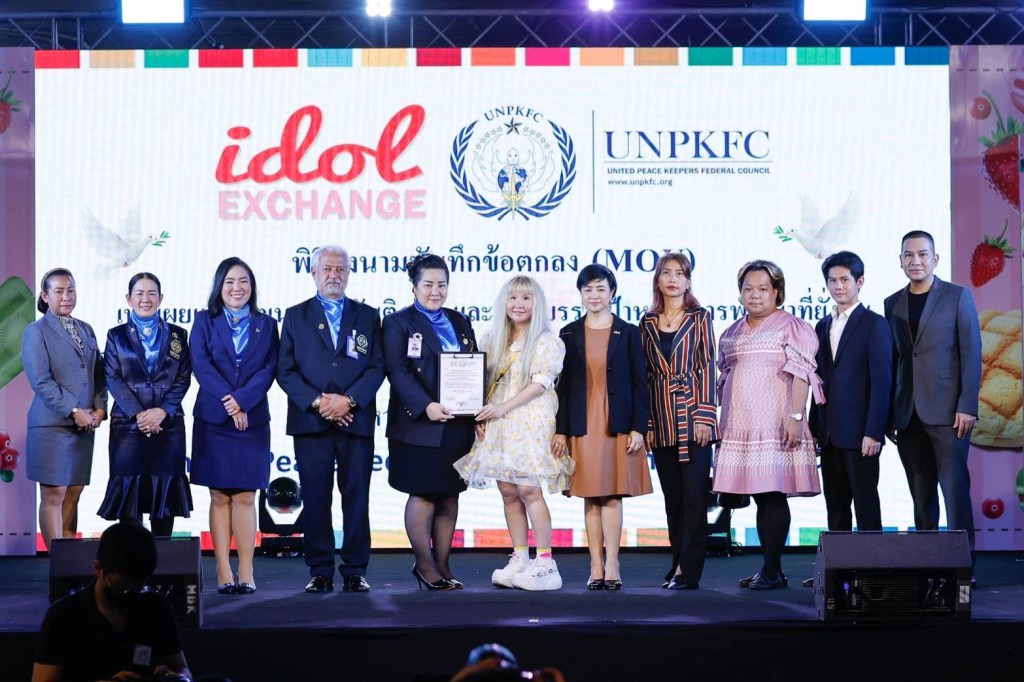 พิธีลงนาม “บันทึกข้อตกลงความร่วมมือ (MOU) วันที่ 4 มิถุนายน พ.ศ.2565 เวลา 17.00 น. บริเวณลานอเวนิวโซน A ศูนย์การค้าเอ็ม บี เค เซ็นเตอร์(MBK CENTER) ดร.อภินิตา ไชยชนะ ประธาน UNPKFC และ คุณกุ้ง-ศรุดา นิ่มพิทักษ์พงศ์ ซีอีโอแห่ง Idol Exchange บันทึกข้อตกลง ลงนามให้ความร่วมมือ (MOU) ว่าด้วยการเผยแพร่วัฒนธรรมสันติภาพ เพื่อบรรลุเป้าหมายการพัฒนาที่ยั่งยืน ในทศวรรษแห่งการลงมือทำ เตรียมผลักดัน “Solf Power Actions” ซึ่งทาง UNPKFC และ Idol Exchange ได้ตระหนักเห็นความสำคัญในหน้าที่รับผิดชอบ ร่วมกัน เพื่อส่งเสริมและผลิตกำลังเยาวชน เพื่อการพัฒนาที่ยั่งยืน และเพื่อให้บรรลุเป้าหมายในปี 2030 ตามที่สหประชาชาติได้กำหนด เผยเตรียมดัน Solf Power Actions ในประเทศไทย ให้โดดเด่นในสายตาชาวโลก