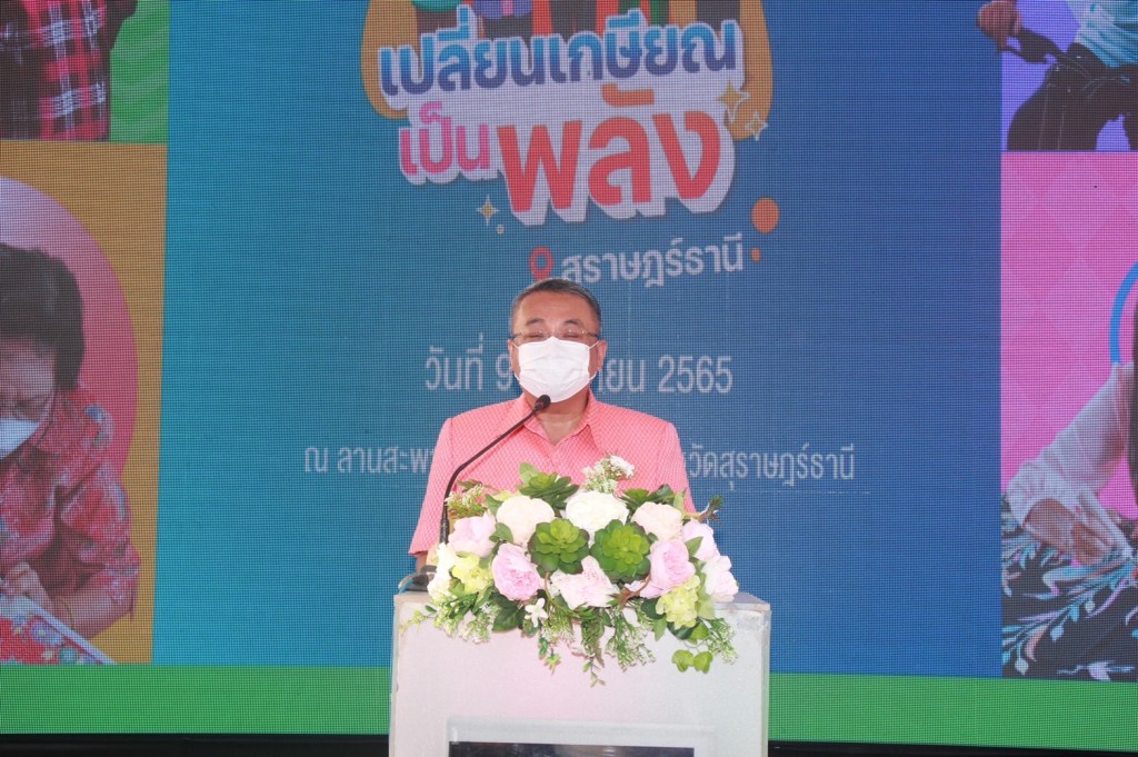 ดร.วิภารัตน์ ดีอ่อง ผู้อำนวยการสำนักงานการวิจัยแห่งชาติ กล่าวว่า วช. ได้รับมอบหมายจากกระทรวง อว. ในยุทธศาสตร์ Quick Wins เรื่อง “เปลี่ยนเกษียณเป็นพลัง” ให้ วช. ดำเนินการสร้างกลไกการเตรียมความพร้อมในการเข้าสู่สังคมสูงอายุของประเทศไทย โดยคนเกษียณหรือผู้สูงอายุควรได้รับโอกาสและสร้างแรงจูงใจในการเข้าสู่สังคมการเรียนรู้ตลอดชีวิต เพื่อพัฒนาทักษะที่จำเป็นและพัฒนาศักยภาพในการทำงานที่เป็นที่ต้องการของตลาดงาน ในภาครัฐและภาคเอกชน หรือความต้องการในการทำงานให้ได้มีโอกาสเป็นพลังในการขับเคลื่อนเศรษฐกิจและสังคม ซึ่ง วช. ได้กำหนดให้มีแผนงาน “เปลี่ยนเกษียณเป็นพลัง” เพื่อขับเคลื่อนนโยบายดังกล่าว ผ่านการสนับสนุนกิจกรรมส่งเสริมและสนับสนุนการวิจัย โดยให้ความสำคัญกับฐานความรู้เดิมและองค์ความรู้ที่มีอยู่ของสถาบันการศึกษา ที่พร้อมนำไปต่อยอดและขยายผล ร่วมกับหน่วยงานและมหาวิทยาลัย ภายใต้กระทรวง อว. และ หน่วยงานที่เกี่ยวข้อง เพื่อให้เกิดผลผลิต ผลลัพธ์ และผลสัมฤทธิ์ ตามเป้าหมายที่วางไว้ และเกิดประโยชน์สูงสุดต่อผู้สูงอายุไทย ซึ่งโครงการ “เปลี่ยนเกษียณเป็นพลัง” ได้ดำเนินการขับเคลื่อนและขยายผลเข้าสู่ ระยะที่ 2 โดยมุ่งที่จะผลักดันให้เกิดผลและเพิ่มความยั่งยืนให้มากขึ้น โครงการ “การพัฒนาทักษะการประกอบอาชีพในโรงเรียนผู้สูงวัยเพื่อรองรับวิถีชีวิตใหม่” เป็นหนึ่งในโครงการภายใต้แผนงาน “เปลี่ยนเกษียณเป็นพลัง” ระยะที่ 2 โดยโครงการนี้ จะนำฐานความรู้เดิมและองค์ความรู้ที่มีอยู่ของสถาบันการศึกษา ร่วมกับการใช้กิจกรรมเข้ามาบูรณาการ การเรียนรู้ของผู้สูงอายุในจังหวัดสุราษฎร์ธานี เพื่อสร้างหลักสูตรการพัฒนาทักษะการประกอบอาชีพในโรงเรียนผู้สูงอายุ ให้ผู้สูงอายุมีคุณลักษณะ “อยากรู้ อยากมีรายได้ อยากทำ” และสนับสนุนการเป็นผู้ประกอบการของผู้สูงอายุ เพิ่มและพัฒนาทักษะ Reskill & Upskill ให้กับผู้สูงอายุ และเพื่อเป็นการส่งเสริมสังคมแห่งการเรียนรู้ของผู้สูงอายุในการเข้าสู่สังคมวิถีชีวิตใหม่ (New Normal)