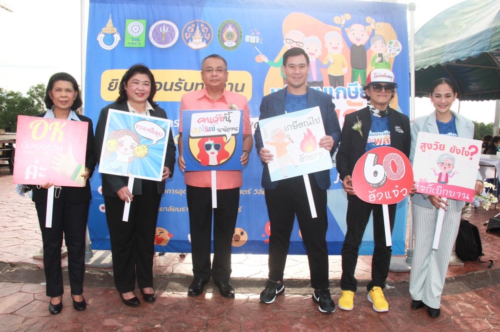 วันที่ 9 มิถุนายน 2565 รองศาสตราจารย์พิเศษ ดร.ดวงฤทธิ์ เบ็ญจาธิกุล ชัยรุ่งเรือง เลขานุการรัฐมนตรีว่าการและโฆษกกระทรวงการอุดมศึกษา วิทยาศาสตร์ วิจัยและนวัตกรรม เป็นประธานในพิธีเปิด และเป็นสักขีพยานในการลงนามความร่วมมือแสดงเจตจำนงในการขับเคลื่อนโครงการ “เปลี่ยนเกษียณเป็นพลัง” ระหว่างกระทรวงการอุดมศึกษา วิทยาศาสตร์ วิจัยและนวัตกรรม (อว.) โดย วช. ร่วมกับหน่วยงานที่เกี่ยวข้องอีก 3 หน่วยงาน ประกอบด้วย มนร. จ.สุราษฎร์ธานี และ มรส. เพื่อร่วมกันสร้างและพัฒนาโรงเรียนผู้สูงวัยในรูปแบบ Digital Education & On the job Coaching และ Model กระบวนการจัดการความรู้จากการวิจัยมาเพื่อเพิ่มทักษะ รวมถึงนำหลักสูตรการพัฒนาทักษะการประกอบอาชีพในโรงเรียนผู้สูงวัย Online & Onsite โดย Senior Trainer และ Reskill & Upskill ในทักษะที่เหมาะสมกับผู้สูงวัย เพื่อรองรับวิถีชีวิตใหม่ โดยมี นายวิชวุทย์ จินโต ผู้ว่าราชการจังหวัดสุราฎร์ธานี กล่าวต้อนรับ และ ดร.วิภารัตน์ ดีอ่อง ผู้อำนวยการสำนักงานการวิจัยแห่งชาติ กล่าวความเป็นมาของโครงการฯ และ มี ผศ.ดร.เสน่ห์ บุญกำเนิด รองอธิการบดีฝ่ายวิชาการ วิจัยและนวัตกรรม และดร.มนัสวิน นันทเสน หรือ ติ๊ก ชิโร่ นักร้องนักแสดงเข้าร่วมงานในครั้งนี้ด้วย ณ ลานสะพานนริศ จังหวัดสุราษฎร์ธานี
