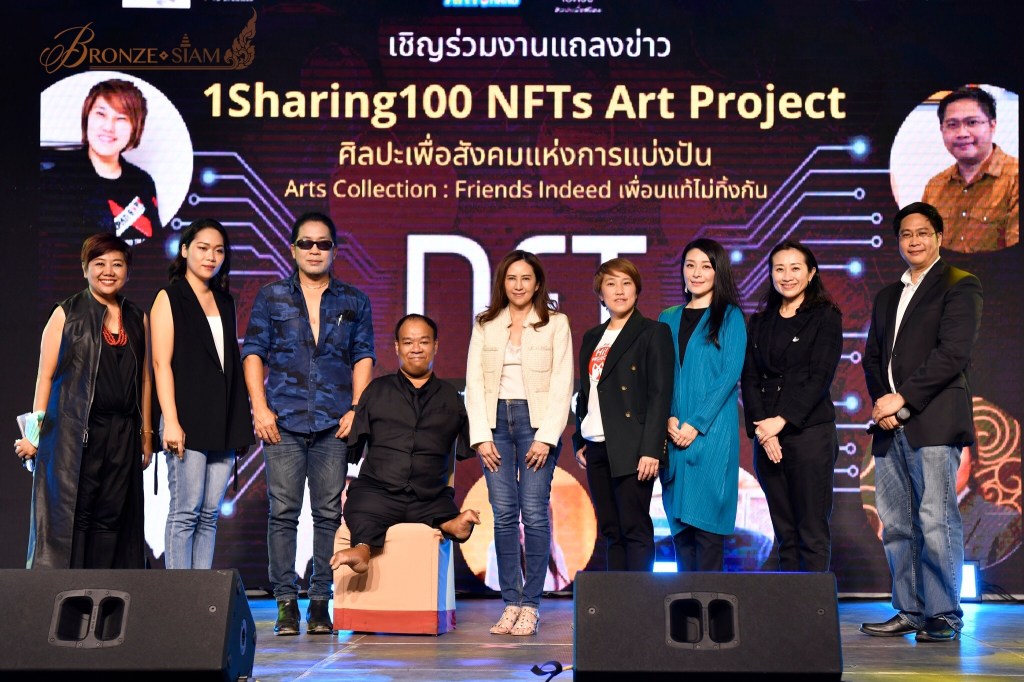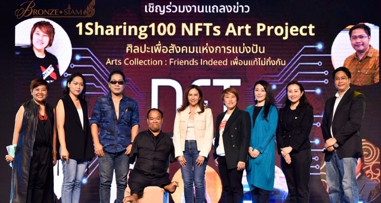 กรุงเทพฯ –10 มิถุนายน 2565 – บ้านศิลปะเอกชัย ร่วมกับ บริษัท จี-ยู ครีเอทีฟ จำกัด ห้างหุ้นส่วนจำกัด อาร์ตโนแฮนด์ บริษัท บรอนซ์สยาม อาร์ต จำกัด และ ภาคีเครือข่าย แถลงข่าวเปิดตัวโครงการ 1 Sharing 100 NFTs Art Project ศิลปะเพื่อสังคมแห่งการแบ่งปัน จัดกิจกรรมประมูลและจำหน่ายผลงานศิลปะดิจิทัล NFT เพื่อสมทบทุนกิจการการกุศล พร้อมทั้งเป็นตัวกลางในการประสานศิลปินและผู้ให้การสนับสนุนงานศิลปะ ทั้งในและต่างประเทศ ได้ขยายเครือข่ายและสร้างสังคมแห่งการแบ่งปันในวงกว้างมากยิ่งขึ้น
