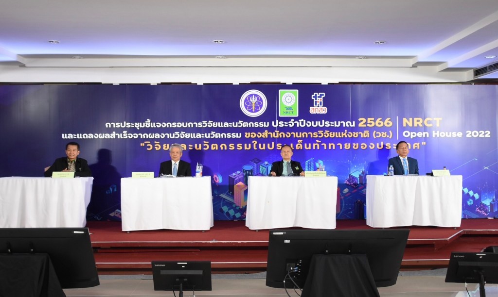 วช. เปิดบ้านชี้แจงกรอบการวิจัยและนวัตกรรม ประจำปี 2566 พร้อมแถลงผลสำเร็จจากการวิจัยและนวัตกรรม NRCT Open House 2022 “วิจัยและนวัตกรรมในประเด็นท้าทายของประเทศ” เพื่อประชาสัมพันธ์เกี่ยวกับการรับข้อเสนอการวิจัยและนวัตกรรม รวมถึงชี้แจงกรอบการวิจัยและนวัตกรรมที่ วช. ให้การสนับสนุนทุนในปี 2566 ระหว่างวันที่ 12 – 19 มิถุนายน 2565 ณ ห้องประชุมจอมพลสฤษดิ์ ธนะรัชต์ ชั้น 2 อาคาร วช.1 สำนักงานการวิจัยแห่งชาติ และออนไลน์ผ่านระบบ Zoom รวมทั้งการถ่ายทอดสด (Live Steaming) ผ่าน Facebook ของสำนักงานการวิจัยแห่งชาติ