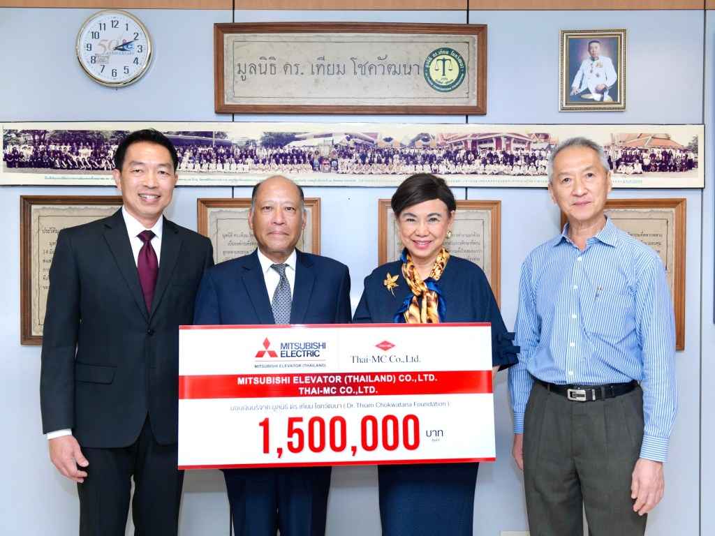 นายสันติพงษ์ บูรณกฤตยากรณ์ ผู้จัดการทั่วไป บริษัท มิตซูบิชิ เอลเลเวเตอร์ (ประเทศไทย) จำกัด กล่าวว่า “ ในช่วงระยะ 2 ปีที่ผ่านมา มิตซูบิชิ เอลเลเวเตอร์ (ประเทศไทย) ได้ตระหนักถึงความเดือนร้อนของประชาชนในสังคม ที่ได้รับผลกระทบจากสถานการณ์โควิด-19 เป็นอย่างดี โดยมีกิจกรรมสนับสนุนและให้ความช่วยเหลืออย่างต่อเนื่อง อาทิ สมทบทุน จำนวนกว่า 535,000 บาท ให้แก่โรงพยาบาลรวม 11 แห่ง เพื่อนำไปใช้ประโยชน์ทางการแพทย์ ในการให้บริการประชาชน ยิ่งไปกว่านั้น ได้เห็นความตั้งใจในการทำงานช่วยเหลือประชาชนของ มูลนิธิ ดร.เทียม โชควัฒนา ที่จัดโครงการปันสุขอิ่มใจ จึงประสงค์เข้าร่วมกับทางไทย-เอ็มซีสมทบทุน ในโครงการฯ รวมเป็นจำนวน 1.5 ล้านบาท โดยมั่นใจว่า เป็นอีกช่องทางที่จะให้ความช่วยเหลือบรรเทาทุกข์ให้กับผู้เดือดร้อนได้เป็นอย่างดี”
