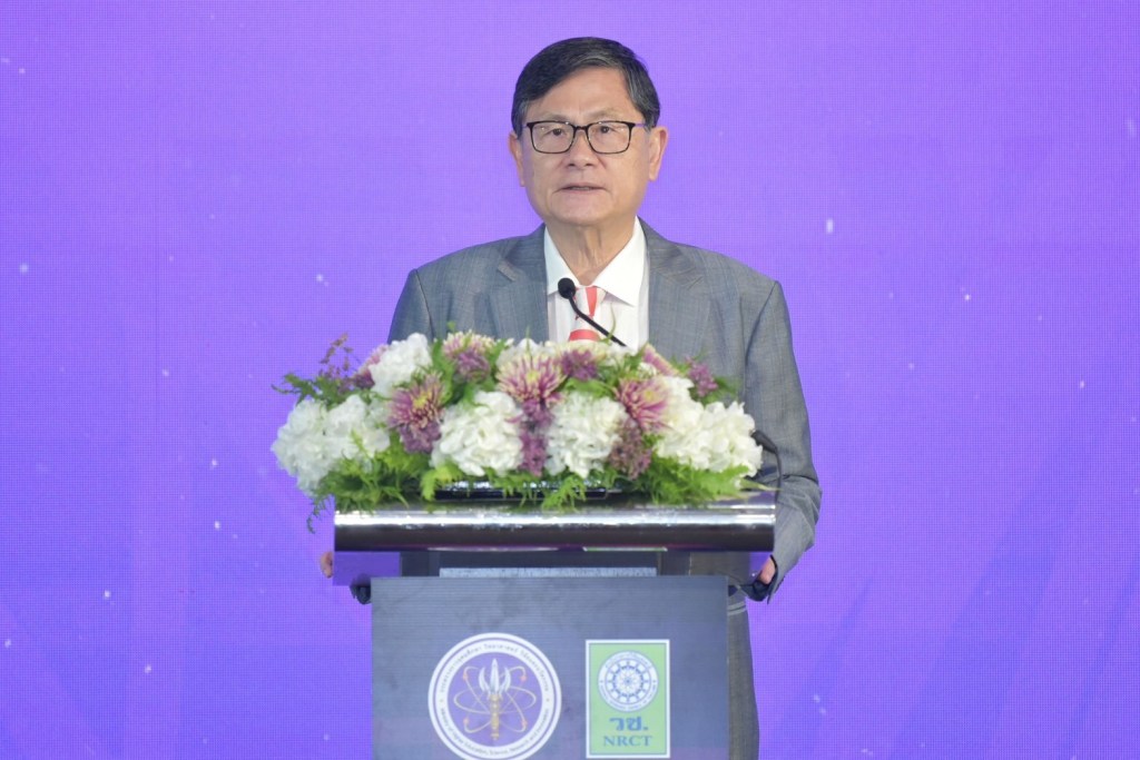 และจากการที่ อว. ได้มอบหมายให้ธัชชา ( โครงการขับเคลื่อนและพัฒนางานวิจัยเพื่อสังคม) ทำวิจัยเรื่องสุวรรณภูมิ ซึ่งเป็นการย้อนประวัติศาสตร์ไทยลงไปอีก 2,000-3,000 ปีทำให้เป็นโอกาสดี เพราะจากการเดินทางไปเยี่ยมชมบริติชมิวเซียม ประเทศอังกฤษเมื่อเร็ว ๆ นี้ได้มีการหารือที่เราจะนำลูกปัดในยุคบ้านเชียงไปจัดแสดงบ้าง เราอยากส่งเสริมเกียรติภูมิของประเทศไทยนำของสำคัญของไทยไปเปิดพื้นที่ที่บริติชมิวเซียมโดยมีความเป็นไปได้ว่าจะเป็นรูปธรรมไม่เกินหนึ่งปี ทำให้จากนี้บริติชมิวเซียมจะมีอารยธรรมไทยย้อนไปถึงสุวรรณภูมิได้จัดแสดงในระดับโลกตลอดปี สิ่งที่ตนคิดเป็นเรื่องก้าวกระโดด แต่อยากให้นักวิจัยคิดแบบทางลัดหรือ Shortcut หรือ Bypass บ้างและอยากให้คิดว่า เราทำได้และกล้าทำ ขอให้เห็นการวิจัยเป็นโอกาสอย่าเป็นปัญหา อยากให้วิจัยเพื่อชาติบ้านเมือง นำพาประเทศชาติไปสู่การพัฒนา”