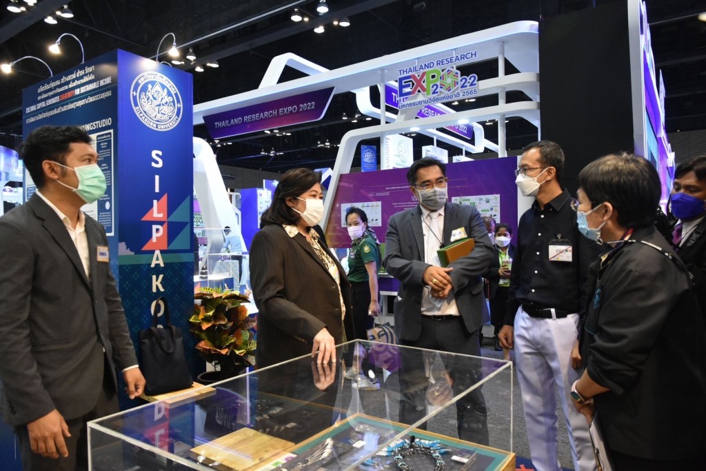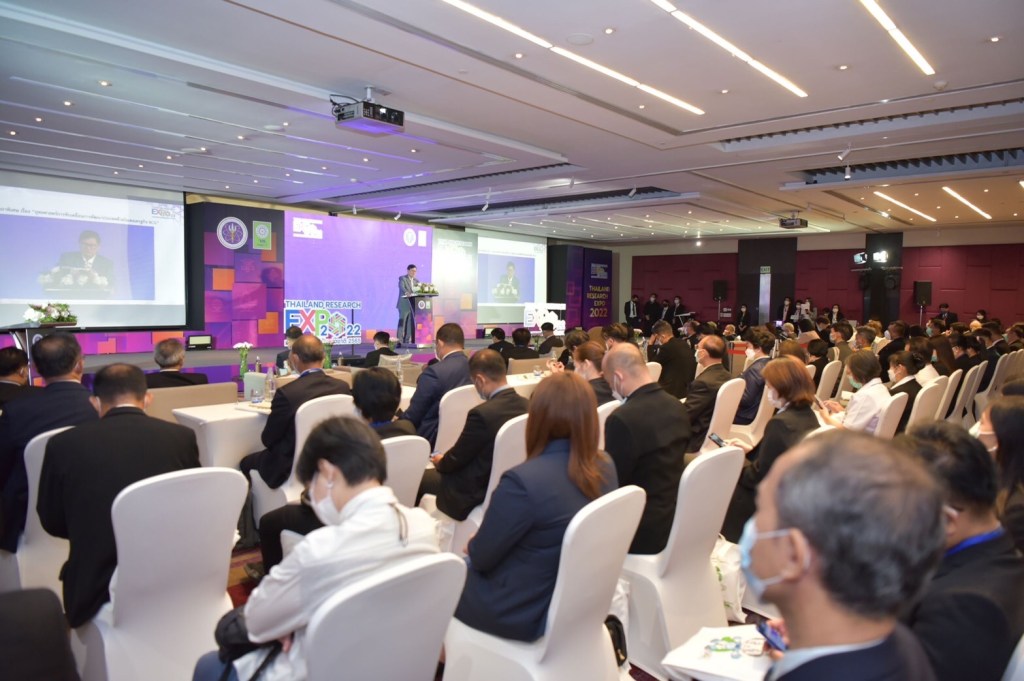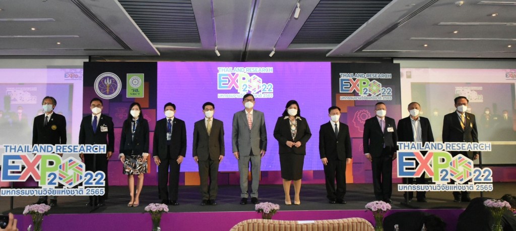 อนึ่ง งานมหกรรมงานวิจัยแห่งชาติ 2565 (Thailand Research Expo 2022) ” จัดเป็นปีที่ 17 โดยนำเสนอผลงานนิทรรศการน้อมรำลึกถึงพระมหากรุณาธิคุณพระบาทสมเด็จพระบรมชนกาธิเบศร มหาภูมิพลอดุลยเดชมหาราชบรมนาถบพิตร และนิทรรศการเฉลิมพระเกียรติพระบาทสมเด็จพระวชิรเกล้าเจ้าอยู่หัว มหาวิชราลงกรณ บดินทรเทพยวรางกูร รัชกาลที่ 10 และนิทรรศการเฉลิมพระเกียรติ สมเด็จพระกนิษฐาธิราชเจ้า กรมสมเด็จพระเทพรัตนราชสุดาฯ สยามบรมราชกุมารี รวมถึงนิทรรศการ การนำเสนอข้อมูลและผลงานจากเครือข่ายในระบบวิจัยทั่วประเทศ โดยรวมนิทรรศการศาสตร์และศิลป์งานวิจัย และ นิทรรศการชุมชนเข้มแข็งด้วยวิจัยและนวัตกรรม นิทรรศการการประกวดผลงานนวัตกรรมสายอุดมศึกษา นิทรรศการนำเสนอบทความผลงานวิจัย Thailand Research Expo & Symposium 2022 ครอบคลุมประเด็นสำคัญ 5 ธีมในการนำเสนอผลงาน ที่ประกอบด้วย 1.งานวิจัยและนวัตกรรมเพื่อพัฒนาเศรษฐกิจสร้างคุณค่าและเศรษฐกิจสร้างสรรค์ 2.งานวิจัยและนวัตกรรมเพื่อยกระดับสังคมและสิ่งแวดล้อมอย่างยั่งยืน 3.งานวิจัยและนวัตกรรมเพื่อตอบโจทย์โรคติดเชื้อไวรัสโคโรนา (COVID-19) 4.งานวิจัยและนวัตกรรมเพื่อขับเคลื่อนเศรษฐกิจเพื่ออนาคต และ5.งานวิจัยและนวัตกรรมเพื่อใช้ประโยชน์เชิงการพัฒนาพื้นที่ และการจัดประชุมสัมมนาออนไลน์กว่า 150 หัวข้อ นอกจากนี้ภายในงานยังได้จัดให้มีการมอบสุดยอดผลงานวิจัยที่ได้รับรางวัลเกียรติยศ Platinum Award ซึ่งจะได้รับถ้วยรางวัลพระราชทานจากสมเด็จพระกนิษฐาธิราชเจ้า กรมสมเด็จพระเทพรัตนราชสุดาฯ ตั้งแต่ปี 2553 จนถึงปัจจุบัน เป็นทศวรรษของรางวัลอันทรงเกียรติ อีกทั้งยังมีความสำคัญต่อการขับเคลื่อนงานวิจัยและนวัตกรรมไปใช้ประโยชน์ จึงจัดให้มีนิทรรศการชุมชนเข้มแข็งด้วยวิจัยและนวัตกรรมอย่างต่อเนื่อง กิจกรรมเวที Hilight Stage และ Mini Mini Stage Research Expo Talk เป็นเวทีหลักที่ใช้เทคนิคการนำเสนอผลงานวิจัยและนวัตกรรมที่มีความพร้อมใช้ประโยชน์ทั้งในระดับชุมชน/องค์กร/พาณิชย์ ที่มีรูปแบบการนำเสนอที่หลากหลาย โดยการกำหนดประเด็นเฉพาะและมีพิธีกรมืออาชีพเป็นผู้ดำเนินการ โดยการนำเสนอในรูปแบบของการถอดบทเรียนความสำเร็จ การถ่ายทอดองค์ความรู้ เทคนิค และวิธีการในการนำผลงานวิจัยไปต่อยอดและนำไปใช้ประโยชน์แก่ชุมชน หรือประชาชนผู้สนใจ และกิจกรรมในภาคการประชุมยังมีหัวข้อที่หลากหลายทันต่อเหตุการณ์ที่เกิดขึ้น