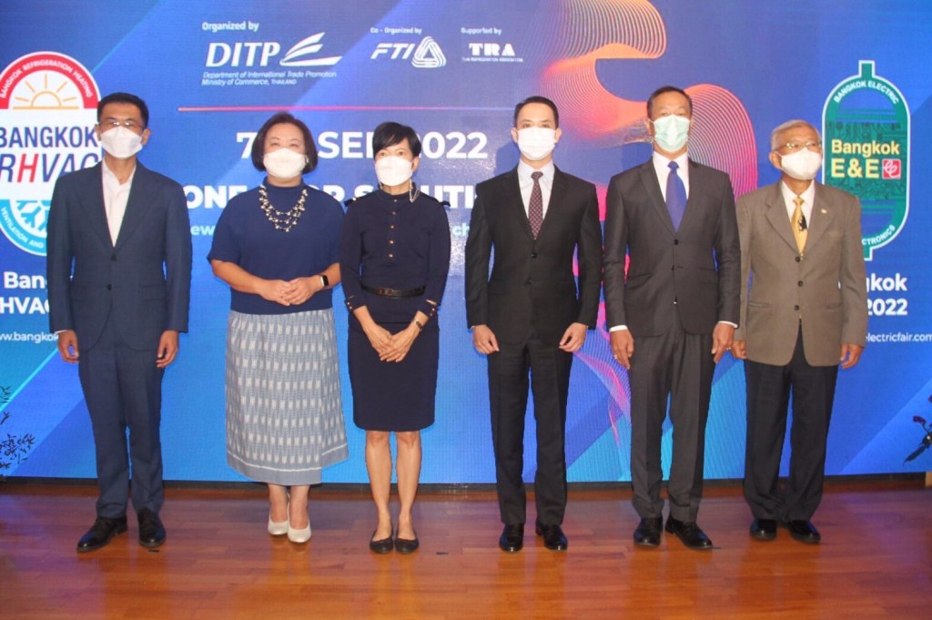 นายนันทพงษ์ จิระเลิศพงษ์ รองอธิบดีกรมส่งเสริมการค้าระหว่างประเทศ กระทรวงพาณิชย์ เปิดเผยในงานแถลงข่าวงานแสดงสินค้าเครื่องปรับอากาศและเครื่องทำความเย็น 2565 (Bangkok RHVAC 2022) และงานแสดงสินค้าเครื่องใช้ไฟฟ้าและอิเล็กทรอนิกส์ 2565 (Bangkok E&E 2022) ว่า กรมส่งเสริมการค้าระหว่างประเทศ ร่วมกับกลุ่มอุตสาหกรรมเครื่องปรับอากาศและเครื่องทําความเย็น และกลุ่มอุตสาหกรรมไฟฟ้าและอิเล็กทรอนิกส์ สภาอุตสาหกรรมแห่งประเทศไทย เตรียมจัดงาน Bangkok RHVAC 2022 และ Bangkok E&E 2022 ขึ้นอีกครั้งในรอบ 3 ปี หลังจากว่างเว้นไปเนื่องจากสถานการณ์การแพร่ระบาดของโควิด-19 โดยทั้งสองงานจะจัดขึ้นพร้อมกันภายใต้แนวคิด One Stop Solutions พร้อมนวัตกรรมใหม่เพื่อตอบรับความท้าทายใหม่ๆ ของโลก (New Innovations for New Global Challenges) ซึ่งจะเป็นการโชว์ศักยภาพของผู้ประกอบการไทยด้วยสินค้านวัตกรรมล้ำหน้าที่ตอบรับความท้าทายที่โลกต้องเผชิญ ทั้งโรคระบาด และปัญหาสิ่งแวดล้อม โดยได้รวบรวมสินค้าและบริการไว้อย่างครบครัน อาทิ แบรนด์ผู้ผลิตเครื่องปรับอากาศ ตู้เย็น ตู้แช่แข็ง ไปจนถึงผู้ผลิตคอมเพรสเซอร์ อุปกรณ์ และส่วนประกอบในระบบทำความเย็น ตลอดจนผู้ผลิตเครื่องใช้ไฟฟ้าและอิเล็กทรอนิกส์ ทั้งเครื่องใช้ไฟฟ้าในครัวเรือน และอุปกรณ์ไฟฟ้าอุตสาหกรรม รวมกว่า 100 บริษัท 400 คูหา บนพื้นที่ 10,000 ตารางเมตร