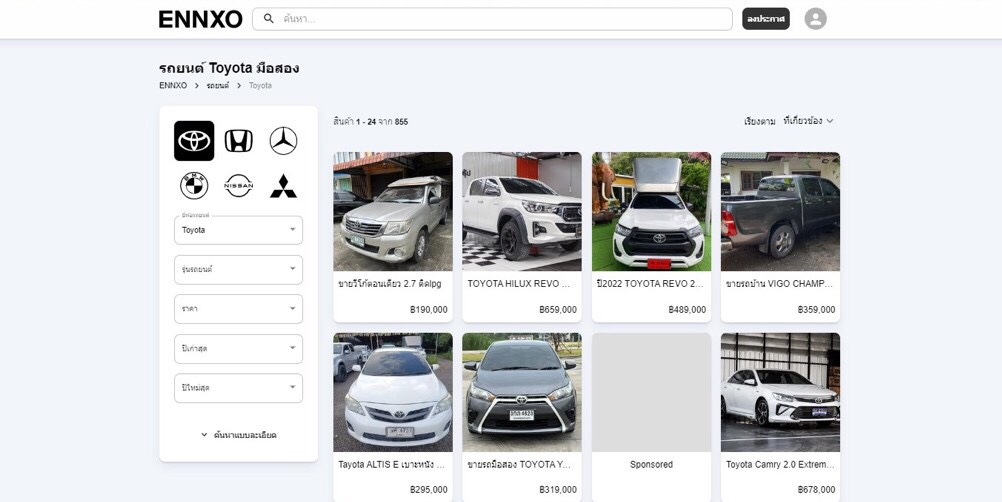 เลือกซื้อขายรถยนต์มือสองที่ ENNXO
