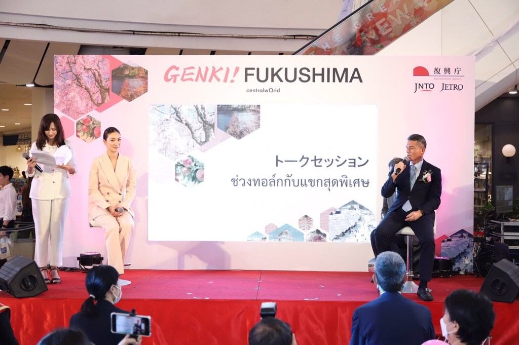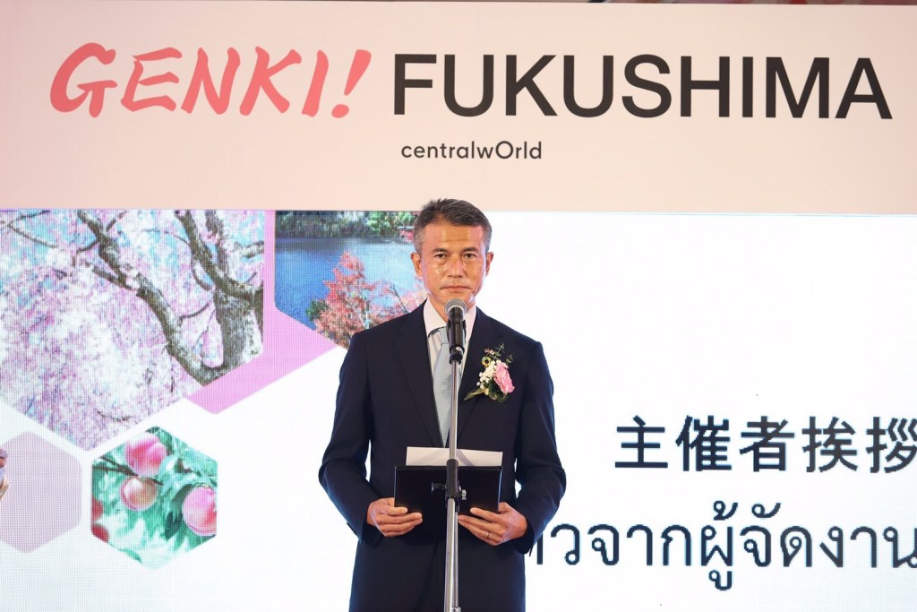 มร.ยูอิจิ โอบะ อัครราชทูตญี่ปุ่นประจำประเทศไทย กล่าวว่า “ผมมีความยินดีและรู้สึกเป็นเกียรติเป็นอย่างยิ่งในฐานะคนที่เกิดและเติบโตในอำเภออิวากิจากจังหวัดฟุกุชิมะ และได้มายืนอยู่ในงาน ‘GENKI! FUKUSHIMA’ ที่เซ็นทรัลเวิลด์ในกรุงเทพฯ แห่งนี้ เพื่อถ่ายทอดเสน่ห์ของอาหารการกินและการท่องเที่ยวของจังหวัดฟุกุชิมะให้ชาวไทยทุกท่านได้รับรู้ แม้ว่าจังหวัดฟุกุชิมะเคยได้รับความเสียหายใหญ่หลวงจากแผ่นดินไหว คลื่นยักษ์สึนามิ และภัยพิบัตินิวเคลียร์อันเป็นผลจากแผ่นดินไหวใหญ่ทางฝั่งตะวันออกของญี่ปุ่นในพ.ศ. 2554 ครั้งที่เกิดน้ำท่วมครั้งใหญ่ในประเทศไทยนั้น ญี่ปุ่นและไทยได้ช่วยเหลือซึ่งกันและกัน เป็นการแสดงให้เห็นถึงสายใยและมิตรภาพอันแน่นแฟ้นระหว่างสองประเทศของชาวญี่ปุ่นและชาวไทย เป็นความสัมพันธ์แบบเพื่อนแท้ คือเพื่อนในยามยากโดยแท้