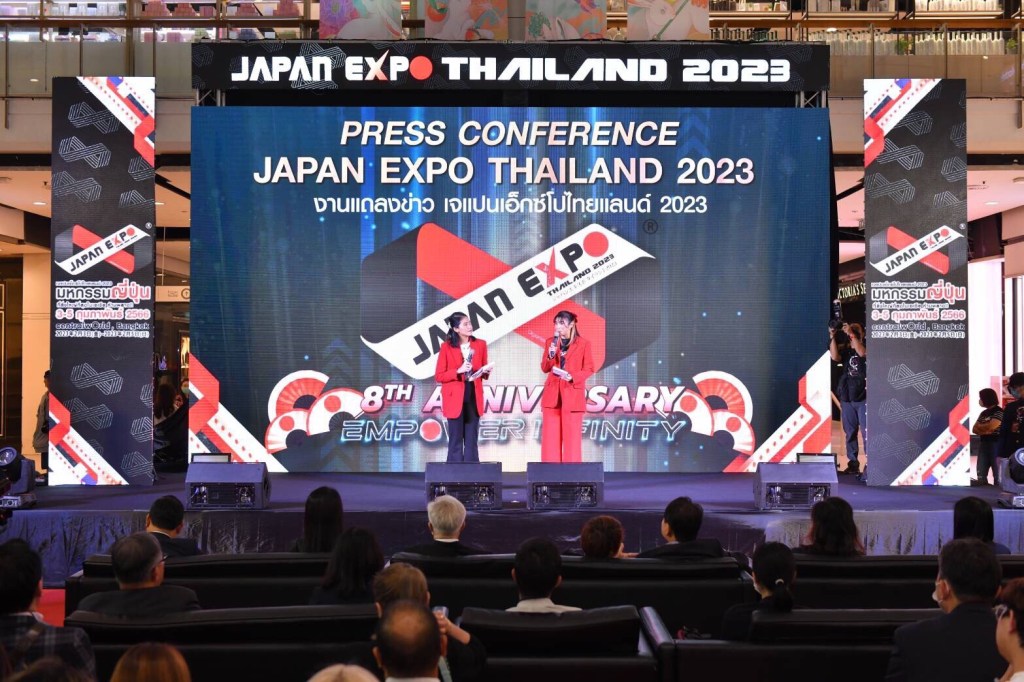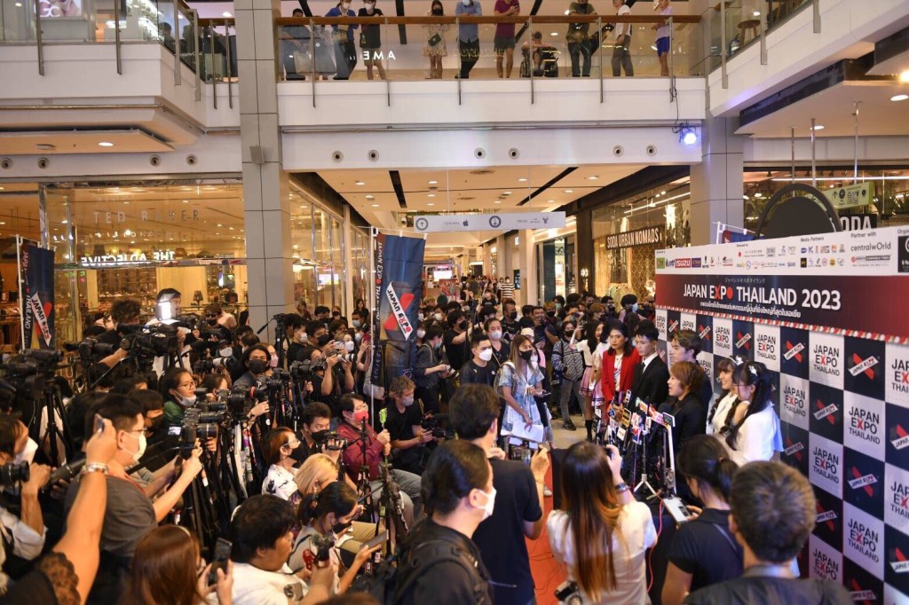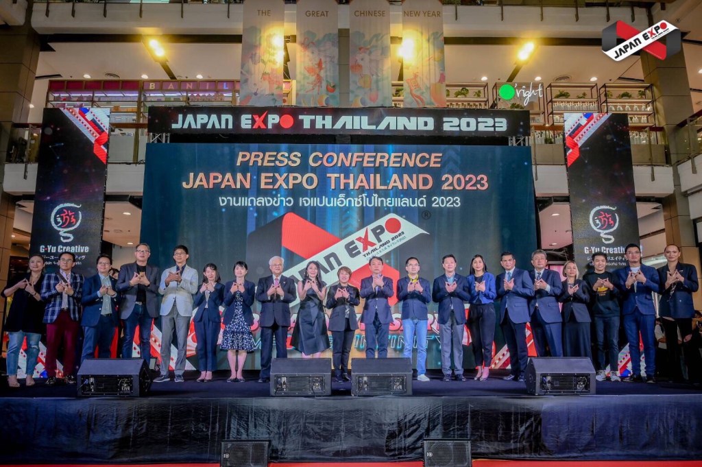 จี-ยู ครีเอทีฟ ใช้พื้นที่ลาน EDEN1 ศูนย์การค้าเซ็นทรัลเวิลด์ จัดงานแถลงข่าว โดยมีผู้บริหาร เหล่าพันธมิตร และผู้สนับสนุนหลักอย่างเป็นทางการ ทัพศิลปินและไอดอลกว่า 200 ชีวิต เข้าร่วมงานแถลงข่าว JAPAN EXPO THAILAND 2023 สุดยิ่งใหญ่อลังการ โดยเริ่มจาก คุณยุพเรศ เอกธุระประคัลภ์ ประธานบริษัท จี-ยู ครีเอทีฟ จำกัด และ คุณโทโมมิ โคบายาชิ กรรมการบริหารบริษัท จี-ยู ครีเอทีฟ จำกัด โชว์คอนเทนต์กิจกรรมญี่ปุ่นแบบครบรสทั้ง 17 โซน ที่จะทำให้คุณสนุก สุข และอิ่มเอมไปกับบรรยากาศความเป็นที่สุดของประเทศญี่ปุ่น ให้ผู้เข้าร่วมงานได้ชิม ช้อป และเพลิดเพลินไปกับกิจกรรมต่างๆ ภายในงานตลอด 3 วันเต็ม!!