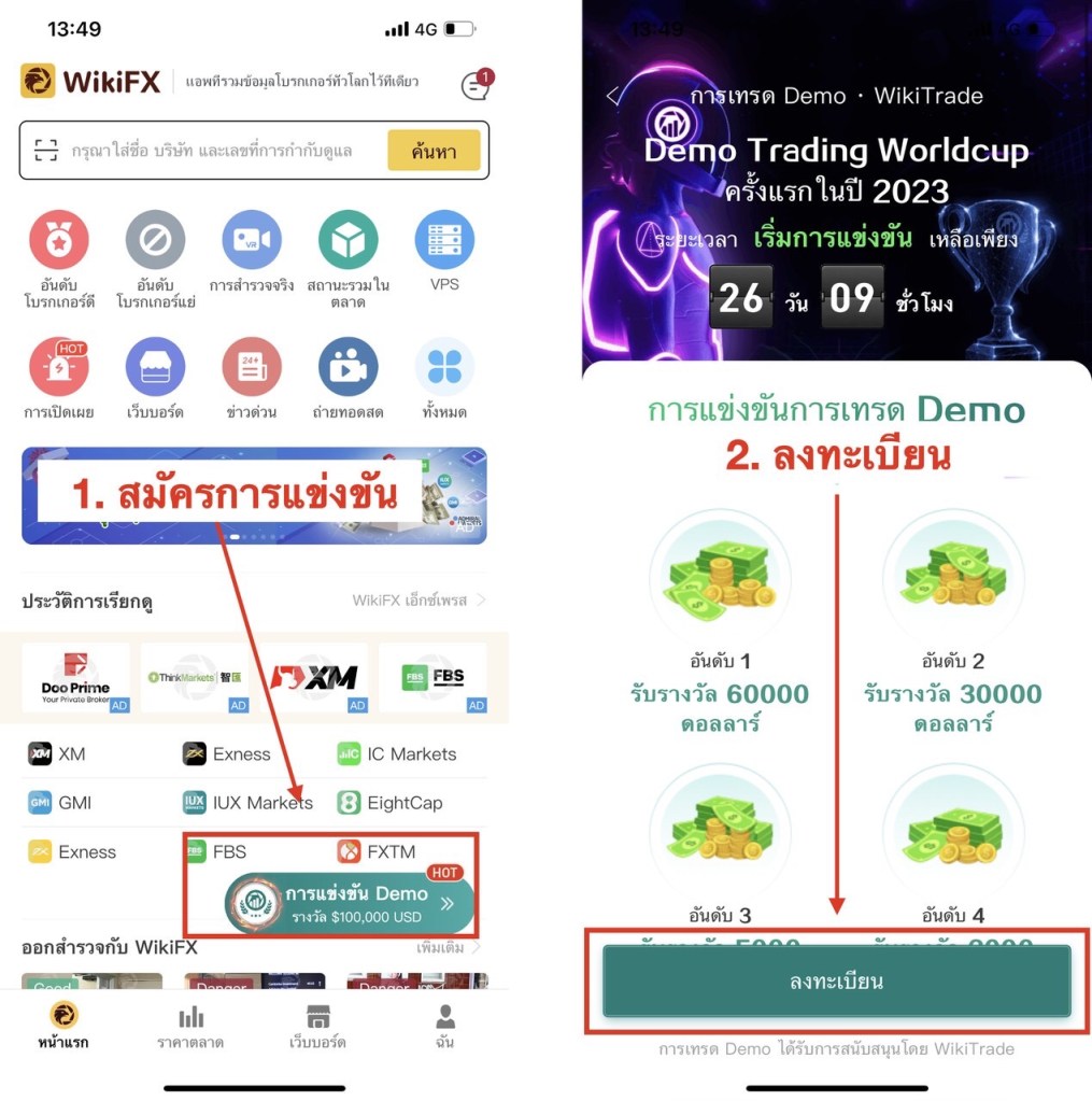 สำหรับรางวัล รางวัลที่ 1 $60,000, รางวัลที่ 2 $30,000, รางวัลที่ 3 $5,000, รางวัลที่ 4 $2,000, รางวัลที่ 5 $1,000 ท่านที่สนใจสามารถสมัครเข้าร่วมการแข่งขัน WikiGlobal Forex Demo Trading World Championship ได้แล้วตั้งแต่วันนี้ และขั้นตอนในการสมัครสามารถทำได้ดังนี้ หรือคลิกดูรายละเอียดเพิ่มเติมได้ที่ : https://www.wikiworld2023.com/th