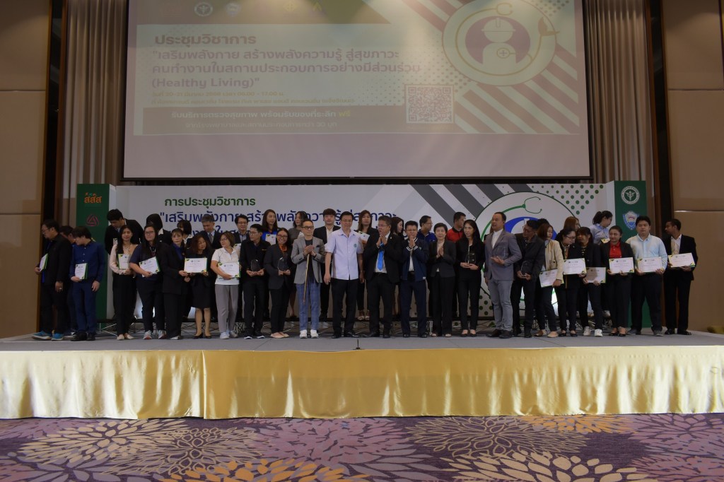 สธ. สสส. จับมือร่วมกัน 6 ภาคีเครือข่าย จัดประชุมวิชาการโดยเชิญผู้เชี่ยวชาญด้านการดูแลและส่งเสริมสุขภาพ ทั้งภาครัฐและเอกชน ร่วมให้ความรู้ แบ่งปันประสบการณ์ พร้อมชี้แนะแนวทางสู่ความสำเร็จการดำเนินงานงานด้านการส่งเสริมสุขภาวะที่ดีแก่คนวัยทำงานในสถานประกอบการอย่างมีส่วนร่วมตามนโยบายรัฐ พร้อมจัดพิธีมอบโล่รางวัล-ใบรับรอง ให้องค์กรต้นแบบที่ผ่านการรับรอง จำนวน 49 องค์กร ก่อนขยายโครงการ Healthy living สู่พื้นที่อื่นๆ ทั่วประเทศ หวังเพิ่มศักยภาพการเติบโตภาคอุตสาหกรรมควบคู่คนทำงานมีสุขภาวะที่ดี ได้รับการตอบรับอย่างดี โดยมีผู้เข้าร่วมมากกว่า 400 คน