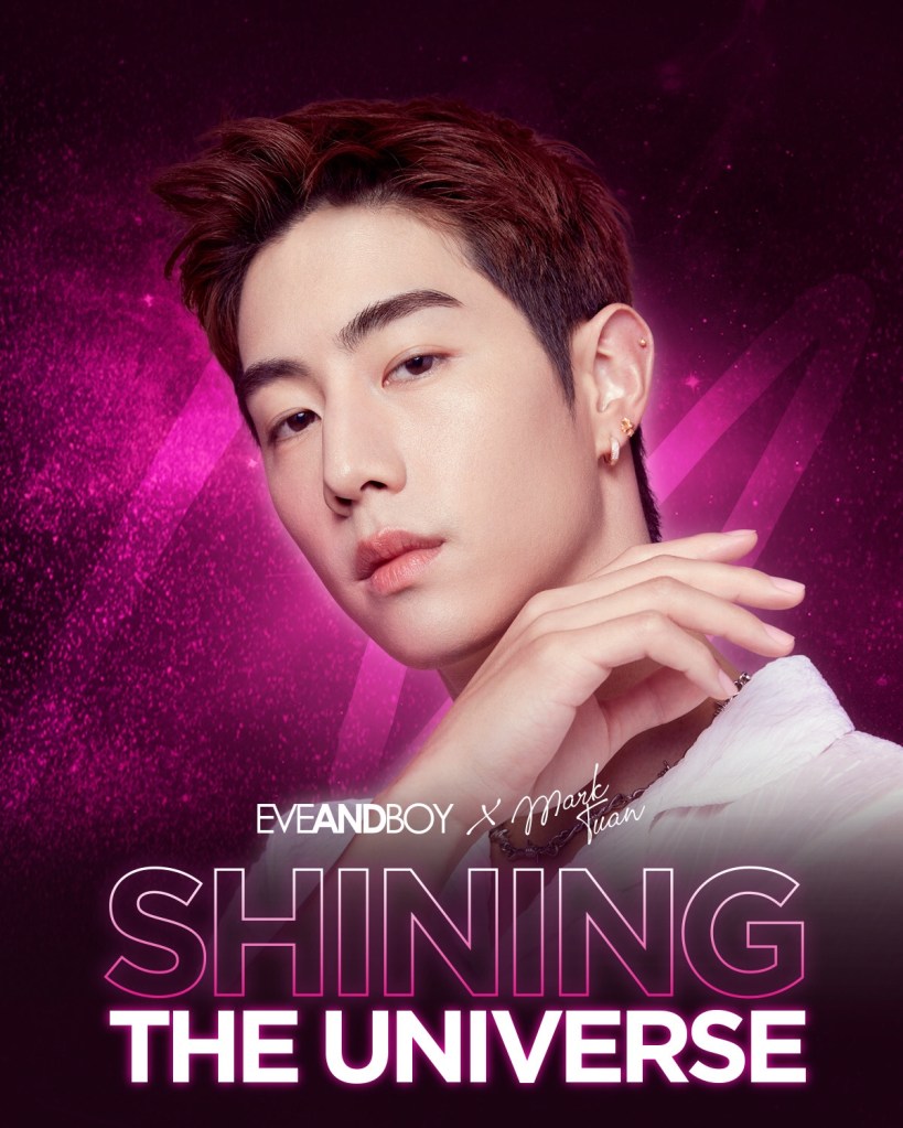 ไอเทมสุดพรีเมียมที่จะพาสาวๆ เปล่งประกายสู่จักวาล EVEANDBOY UNIVERSE BAG x MARK TUAN SHINING BOX มีให้เลือก 2 เซ็ต คือ“BEAUTY” และ “FUN” ซึ่งในกล่องจะได้รับสินค้าสุดเอ็กซ์คลูชีฟ จากโกลบอลแอมบาสเดอร์ที่มีดีไซน์หนึ่งเดียวในโลก อาทิ greeting card โปสเตอร์ โฟโต้การ์ด หมวก หรือ T Shirt พร้อมลายเซ็นดิจิทัล และอื่นๆ อีกมายมาย