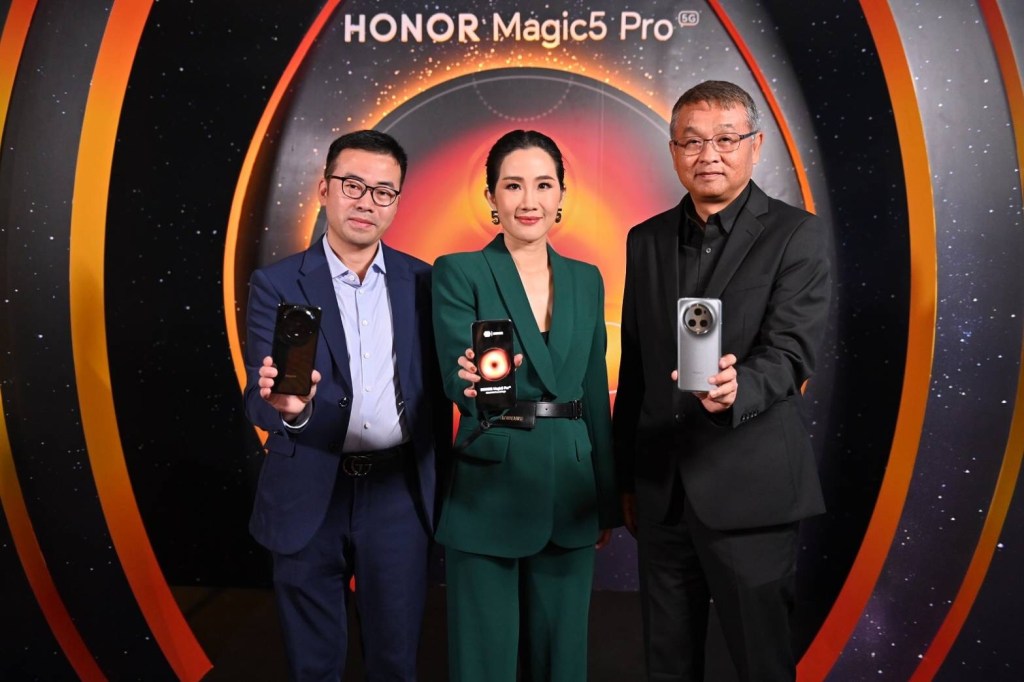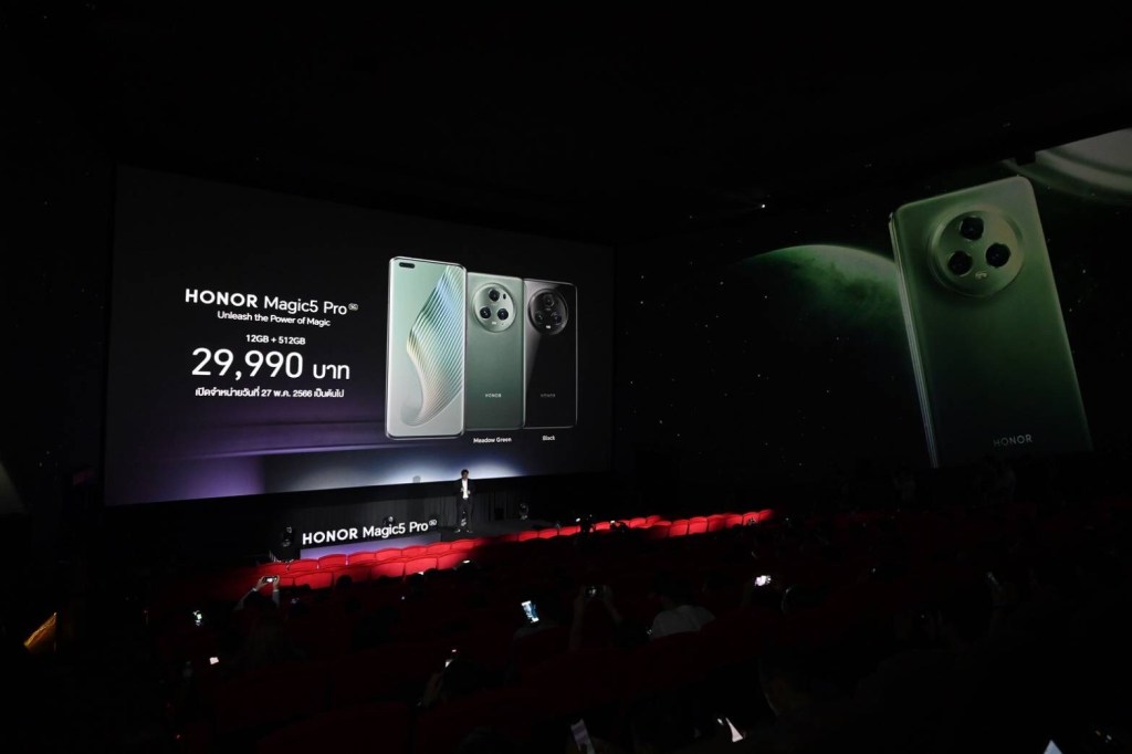 กรุงเทพฯ – 17 พฤษภาคม 2566 – ออเนอร์ (HONOR) ผู้ให้บริการอุปกรณ์อัจฉริยะชั้นนำระดับโลก และบริษัท ซินเน็ค (ประเทศไทย) จำกัด (มหาชน) ผู้นำด้านไอทีอีโคซิสเท็มชั้นนำของเมืองไทย จัดงาน เปิดตัว HONOR Magic5 Pro 5G สมาร์ทโฟนเรือธงใหม่ล่าสุดสู่ตลาดไทยแบบเอ็กซ์คลูซีฟ ในธีม Unleash the Power of Magic เนรมิต โรงภาพยนตร์ Screen X พารากอน ซีนีเพล็กซ์ สู่ Photogenic สเปซด้วยแสงสีของ Magic Hour เปิดประสบการณ์ท้าให้ผู้ร่วมงานพิสูจน์ประสิทธิภาพที่สุดแห่งเทคโนโลยีของสมาร์ทโฟนระดับเรือธงที่กวาดรางวัลมาได้ถึง 18 รางวัล จากมหกรรมโมบายล์ เวิลด์ คองเกรส (MWC) ปี 2023 และยังได้รับการยกย่องจากสื่อชั้นนำระดับโลกให้เป็น “ที่สุดของงานโมบายล์ เวิลด์ คองเกรส” (Best of MWC) จัดเต็มนวัตกรรมเหนือมาตรฐาน พร้อมอัปเกรดฟีเจอร์ในทุกมิติอย่างสมการรอคอย อีกทั้งจัด Experience Zone ทดสอบฟีเจอร์กล้องหลักระดับท็อปที่จะมาปฏิวัติวงการถ่ายภาพด้วยประสิทธิภาพกล้องที่สามารถเก็บความคมชัดได้ทุกสถานการ์ทั้งในที่มืด ระยะใกล้ และระยะไกล การันตีประสิทธิภาพจาก DXOMark พร้อมร่วมพูดคุยกับ Rockkhound ช่างภาพฝีมือระดับโลกที่มาร่วมแชร์ประสบการณ์จริงของการใช้งานและถ่ายภาพด้วย HONOR Magic5 Pro 5G โดยสมาร์ทโฟนรุ่นล่าสุดนี้ เปิดตัวในราคาคุ้มค่าที่สุดในตลาดสมาร์ทโฟนระดับเรือธงเพียง 29,990 บาท พร้อมยกขบวนดีลสุดพีคมากมาย โดยเปิดวางจำหน่ายตั้งแต่วันที่ 27 พฤษภาคม นี้