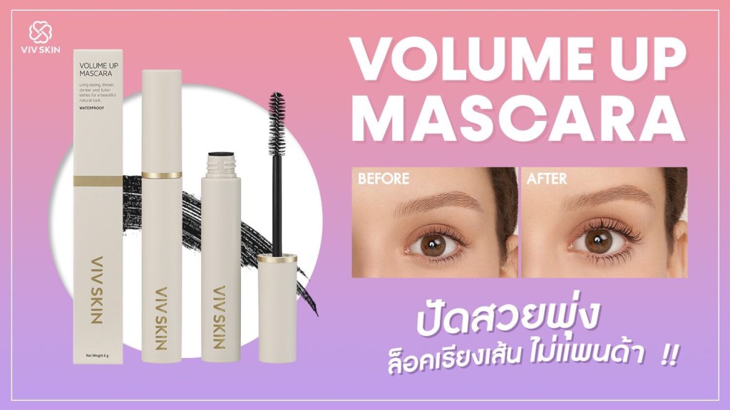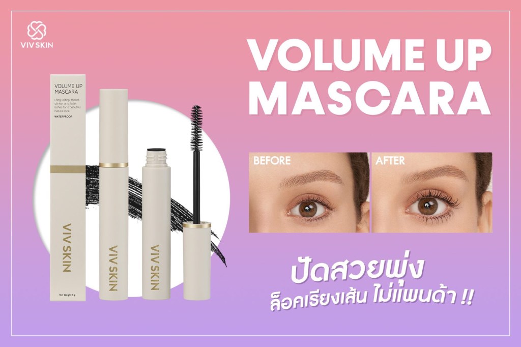 VIV SKIN VOLUME UP MASCARA มีวางจำหน่ายแล้วตั้งแต่วันนี้เป็นต้นไป ผ่านช่องทาง LINE @vivskin, ShopeeMall,และตัวแทนจำหน่ายที่มีบัตรทางการทั่วประเทศ
