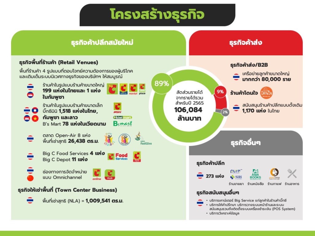 โดยปัจจุบัน BRC มีเครือข่ายร้านค้าปลีกหลากหลายรูปแบบ (Multi-format) ประกอบด้วย บิ๊กซี ซูเปอร์ เซ็นเตอร์, บิ๊กซี เอ็กซ์ตร้า, บิ๊กซี เพลส, บิ๊กซี มาร์เก็ต, บิ๊กซี ฟู๊ดเพลส, บิ๊กซี ดีโป้, บิ๊กซี มินิ, บิ๊กซี ฟู๊ด เซอร์วิส รวมถึงธุรกิจตลาด Open-Air อย่างตลาดทิพย์นิมิตร, ตลาดครอบครัว, ตลาดเดินเล่น ตลอดจนร้านค้าอื่น ๆ ของ BRC เช่นร้านกาแฟวาวี, ร้านหนังสือเอเซียบุ๊คส และร้านขายยาเพรียว อีกทั้งร้านค้าปลีกแบบดั้งเดิมภายใต้โมเดลร้านค้า “โดนใจ” ซึ่งเป็นรูปแบบธุรกิจที่ BRC มุ่งให้การสนับสนุนผู้ประกอบการรายย่อย หรือร้านค้าโชห่วย เพื่อยกระดับสู่ร้านค้าปลีกสมัยใหม่ ผ่านการให้การสนับสนุนการพัฒนาระบบบริหารจัดการด้านต่าง ๆ เพื่อให้สามารถเติบโตและตอบสนองความต้องการของผู้บริโภคในท้องถิ่นของตนเอง