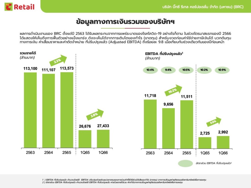 ขณะเดียวกัน BRC ยังมุ่งมั่นเป็นผู้นำในการเปลี่ยนแปลงโลกและสังคมให้ดีขึ้น ตลอดจนดูแลผู้มีส่วนได้ส่วนเสียทุกภาคส่วนอย่างยั่งยืน โดยมีนโยบายด้านสิ่งแวดล้อม สังคม และบรรษัทภิบาล (ESG) เพื่อให้สามารถกำหนดทิศทางธุรกิจอย่างชัดเจนและมีประสิทธิภาพ และวางเป้าหมายในการลดการปล่อยก๊าซเรือนกระจกผ่านการติดตั้งแผงพลังงานแสงอาทิตย์บนพื้นที่ดาดฟ้าของร้านค้า ศูนย์กระจายสินค้า และร่วมมือกับพันธมิตรในการนำรถบรรทุกพลังงานไฟฟ้ามาใช้ในการขนส่งสินค้า ตลอดจนตั้งเป้าว่าจะลดการปล่อยก๊าซเรือนกระจกให้ได้ในอัตราร้อยละ 15 ในปี 2575 เมื่อเทียบกับปี 2564 และตั้งเป้าหมายระยะยาวเป็นองค์กรที่มีการปล่อยก๊าซเรือนกระจกสุทธิเป็นศูนย์ (Net Zero) ในปี 2593 โดย BRC เชื่อว่าด้วยศักยภาพและประสบการณ์ในฐานะผู้นำอุตสาหกรรม เราจะสร้างความสุขของคนไทยให้บิ๊กขึ้น คุ้มขึ้น ล่าสุด BRC ได้ยื่นแบบคำขออนุญาตเสนอขายหลักทรัพย์ และแบบแสดงรายการข้อมูลการเสนอขายหลักทรัพย์ และร่างหนังสือชี้ชวน (แบบไฟลิ่ง) ต่อสำนักงานคณะกรรมการกำกับหลักทรัพย์และตลาดหลักทรัพย์ (สำนักงาน ก.ล.ต.) และอยู่ระหว่างขั้นตอนการพิจารณาของสำนักงาน ก.ล.ต.