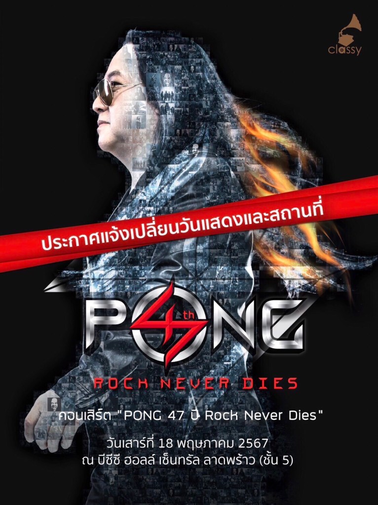 “คลาสซี่ เรคคอร์ด” (Classy Records) ผู้จัดคอนเสิร์ต “PONG 47 ปี Rock Never Dies” ประกาศผ่านเพจเฟซบุ๊ก “Classy Records” แจ้งเปลี่ยนวันแสดงและสถานที่ จากเดิมวันเสาร์ที่ 27 เมษายน 2567 ณ อิมแพ็ค อารีน่า เมืองทองธานี ไปเป็น วันเสาร์ที่ 18 พฤษภาคม 2567 ณ บีซีซี ฮอลล์ เซ็นทรัล ลาดพร้าว (ชั้น 5) เน้นกระชับ อบอุ่น ใกล้ชิดเป็นกันเองมากขึ้น ในบรรยากาศสนุก หวังให้ในฮอลล์บีซีซีมีแต่แฟนเพลงตัวจริงที่รักพี่โป่งมาอยู่รวมตัวกัน