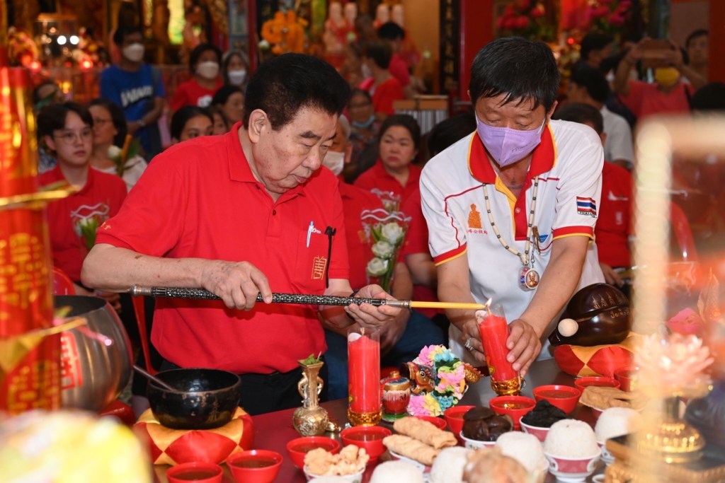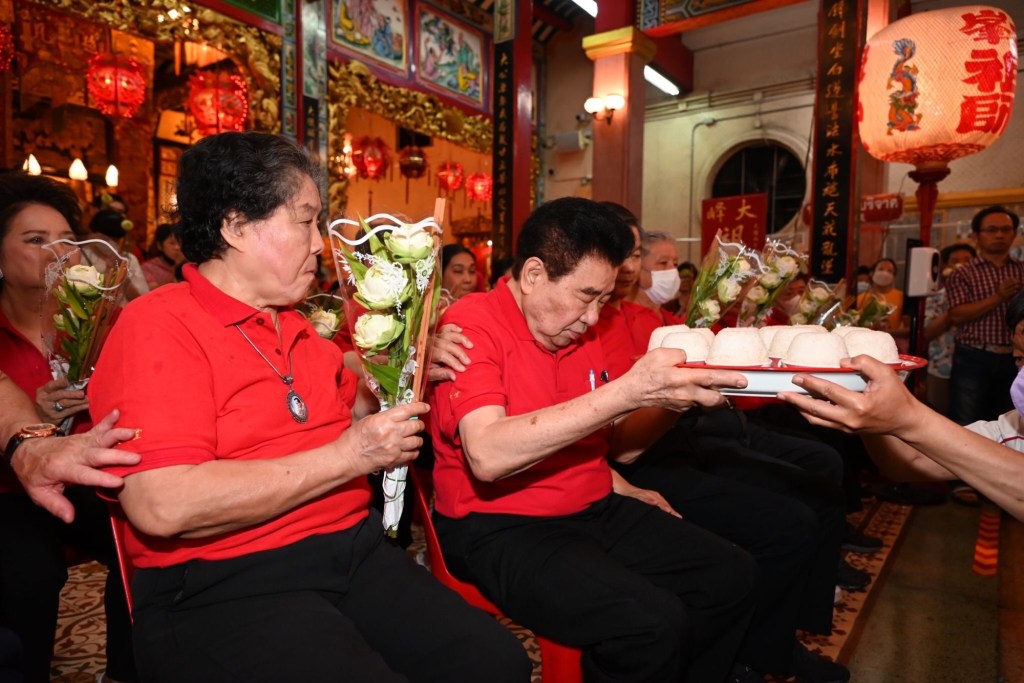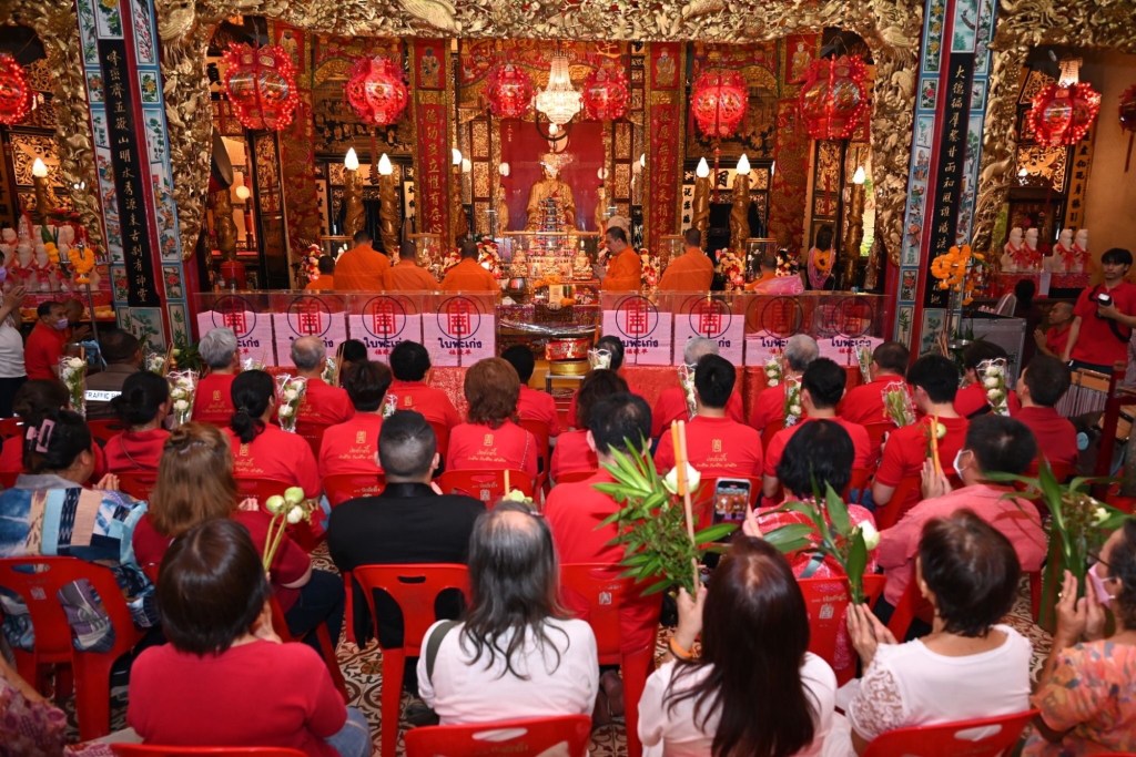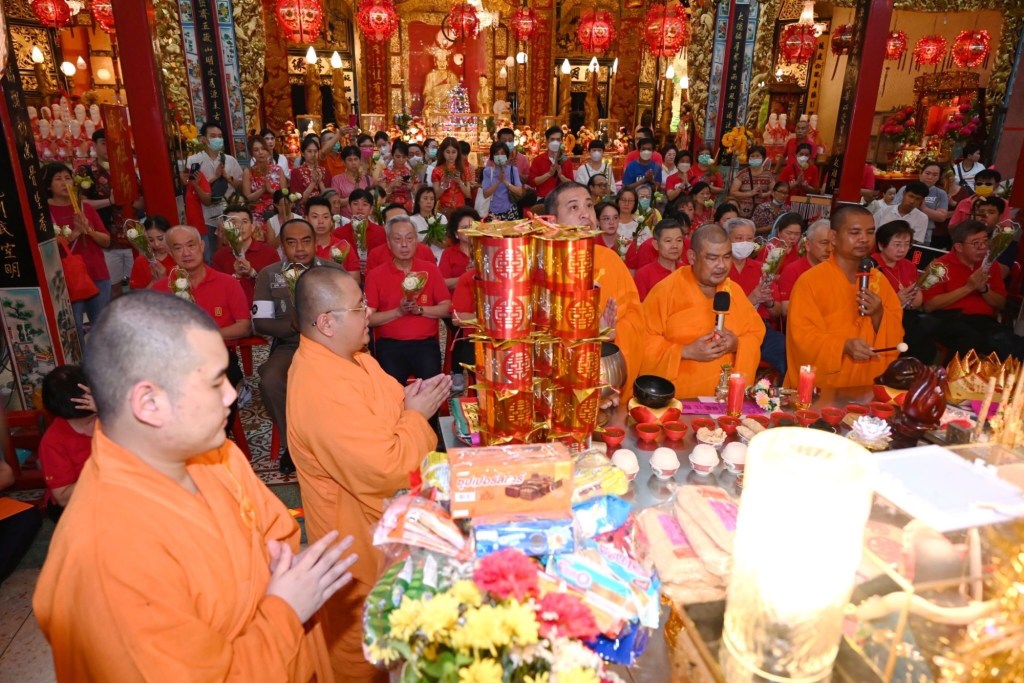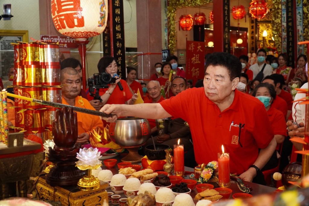 วันนี้ (วันเสาร์ที่ 17 กุมภาพันธ์ 2567 เวลา 23.00 น.) มูลนิธิป่อเต็กตึ๊ง นำโดย นายสัก กอแสงเรือง รองประธานกรรมการ / นายวิชิต ชินวงศ์วรกุล รองประธานกรรมการ นายจารุรัตน์ คุณัตถานนท์ กรรมการและเหรัญญิก พร้อมด้วย คณะกรรมการ คณะผู้ช่วยกรรมการ คณะผู้บริหาร อาสาสมัคร รวมทั้งศิษยานุศิษย์ และสาธุชนจำนวนมาก ร่วมในพิธีเวียนธูปศักดิ์สิทธิ์ เพื่อตั้งจิตอธิษฐานเทพยดาฟ้าดิน (เจ้าแห่งสวรรค์) และหลวงปู่ไต้ฮง ช่วยดลบันดาลให้ประสบโชคดีตลอดปีใหม่ พร้อมกับสรรเสริญและขอพรจากเทพเจ้า ให้ตนเอง และครอบครัว รวมถึงประเทศชาติ อยู่เย็นเป็นสุข ปราศจากโรคภัย เฮงๆ ตลอดปีมังกรทอง (มะโรง) ณ ศาลเจ้าไต้ฮงกง มูลนิธิป่อเต็กตึ๊ง พลับพลาไชย
