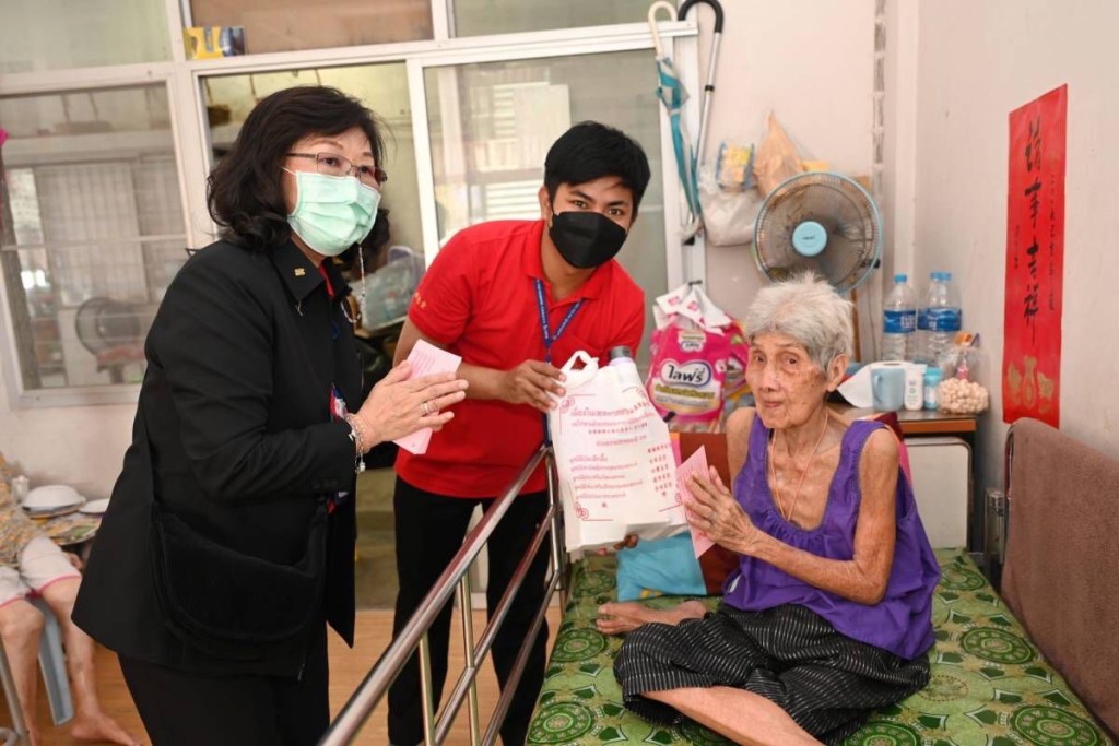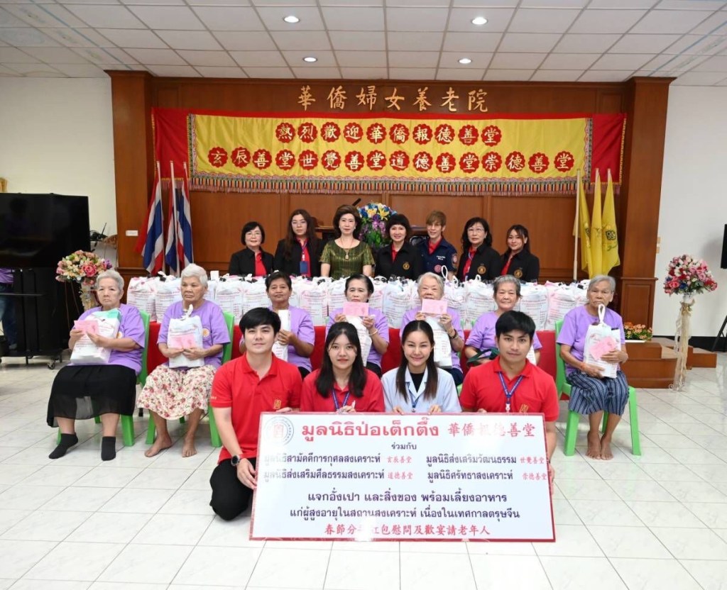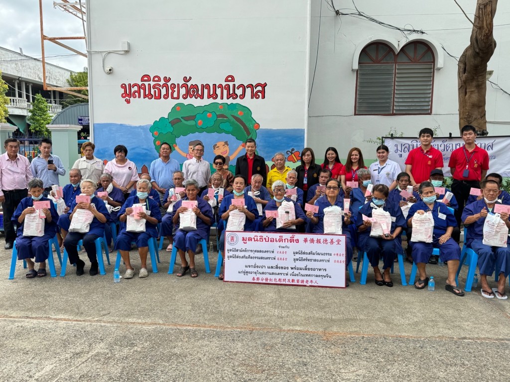 วันนี้ (วันพุธที่ 21 กุมภาพันธ์ 2567) มูลนิธิป่อเต็กตึ๊ง นำโดย นายวิชิต ชินวงศ์วรกุล รองประธานกรรมการ พร้อมด้วย พร้อมด้วยนางศิริกุล โอภาสวงศ์ กรรมการและเลขาธิการ นำทีมฝ่ายสังคมสงเคราะห์ฯ นำโดย นางศิริพร กระจ่างหล้า ผู้จัดการฝ่ายสังคมสงเคราะห์ นางสาวดวงชุตา ติยะพจนพรกุล ผู้ช่วยผู้จัดการฝ่ายสังคมสงเคราะห์ และนางสาวศุภรัตน์ สมบัติเจริญไทย หัวหน้าแผนกส่งเสริมการศึกษาและอาชีพ ลงพื้นที่มอบเงินอั่งเปาคนละ 1,000 บาท พร้อมชุดของขวัญ และจัดเลี้ยงอาหาร ให้กับผู้สูงวัยในสถานสงเคราะห์คนชราปากน้ำ (มูลนิธิวัยวัฒนานิวาส) สถานสงเคราะห์คนชราบางเขน (มูลนิธิธารนุเคราะห์) และสถานสงเคราะห์คนชราปทุมธานี (มูลนิธิมิตรภาพสงเคราะห์) เพื่อเป็นการเยี่ยมเยียนและเป็นขวัญกำลังใจแก่ผู้สูงวัย เนื่องในเทศกาลตรุษจีน ประจำปี 2567 โดยมีมูลนิธิจีน 4 แห่ง ประกอบด้วย มูลนิธิสามัคคีการกุศลสงเคราะห์ มูลนิธิส่งเสริมวัฒนธรรม มูลนิธิส่งเสริมศีลธรรมสงเคราะห์ และ มูลนิธิศรัทธาสงเคราะห์ ร่วมดำเนินการ พร้อมด้วย นางชญาน์นันท์ สรพลจิโรจเดชา หัวหน้าแผนกสื่อสารองค์กร(จีน) พร้อมทีมงาน และนางสาวอัญชลี จงคดีกิจ (ปุ๊-อัญชลี) ร่วมลงพื้นที่มอบสิ่งของ โดยบรรยากาศเป็นไปด้วยความอบอุ่น