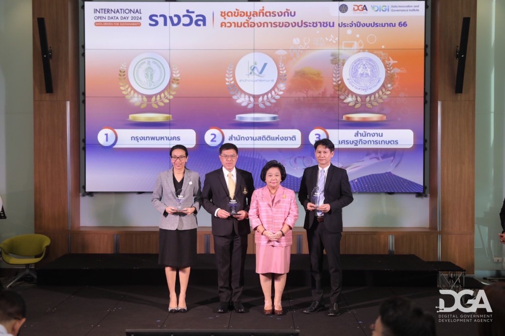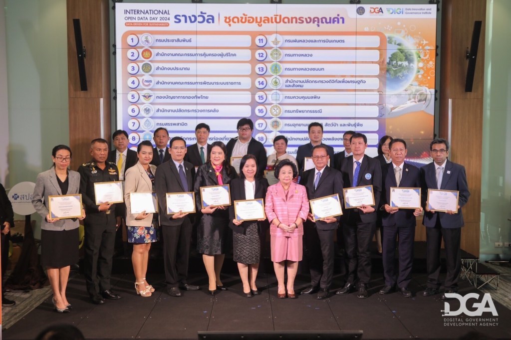 สถาบันนวัตกรรมและธรรมาภิบาลข้อมูล (Data Innovation and Governance Institute : DIGI) ภายใต้ สำนักงานพัฒนารัฐบาลดิจิทัล (องค์การมหาชน) หรือ DGA จัดงาน วันข้อมูลเปิดนานาชาติ ประจำปี 2567 (International Open Data Day 2024) ภายใต้หัวข้อ “Data-Driven for Sustainability: การขับเคลื่อนด้วยข้อมูลเพื่อการพัฒนาที่ยั่งยืน” เพื่อส่งเสริมการใช้งานระบบข้อมูลแบบเปิด (Open Data) เป็นกุญแจสำคัญในการเดินหน้าประเทศสู่การเป็นรัฐบาลเปิดได้อย่างยั่งยืน โดยได้รับเกียรติจาก ดร.พวงเพ็ชร ชุนละเอียด รัฐมนตรีประจำสำนักนายกรัฐมนตรี เป็นประธานในพิธีพร้อมมอบรางวัลให้แก่หน่วยงานที่ได้รับรางวัลทั้ง 45 หน่วยงาน พร้อมด้วยนายวราวุธ ยันต์เจริญ กรรมการผู้ช่วยรัฐมนตรีประจำสำนักนายกรัฐมนตรี และ นายฉัตรชัย ธนาฤดี คณะกรรมการสำนักงานพัฒนารัฐบาลดิจิทัล โดยมี นางไอรดา เหลืองวิไล รองผู้อำนวยการ รักษาการแทนผู้อำนวยการสำนักงานพัฒนารัฐบาลดิจิทัล กล่าวรายงานภาพรวมข้อมูลเปิดของรัฐบาลดิจิทัลและกล่าวให้การต้อนรับแขกผู้มีเกียรติ ทั้งกูรูที่คร่ำหวอดในวงการ Open Data ผู้บริหาร และเจ้าหน้าที่จากภาครัฐ ภาคเอกชน และประชาชนที่ให้ความสนใจเข้าร่วมงานเป็นจำนวนมาก เมื่อวันที่ 5 มีนาคม 2567 ณ สถาบันเพื่อการยุติธรรมแห่งประเทศไทย (องค์การมหาชน)