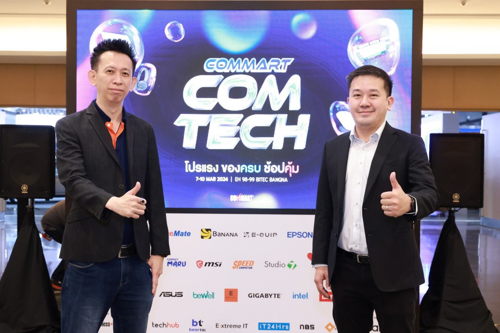 งาน COMMART COMTECH จัดโดย บมจ.เออาร์ไอพี พร้อมด้วยพันธมิตรธุรกิจคับคั่ง อาทิ AppleSheep, ACE, ASUS, AMD, Ascenti, B2S OfficeMate, Banana, Bewell, Ecotrend, E-Quip, Epson, Gigabyte, Intel, iStudio by SPVI, iStudio7, IT City, J.I.B, Lenovo, MSI, SPEED Computer และ Thermaltake และ เครดิตบูโร ร่วมด้วย Media Partner ได้แก่ Business+, eLeader, techhub, Beartai, ExtremeIT, iT24Hrs., Notebookspec และ Overclockzone เข้าชมงานฟรี! เดินทางสะดวกด้วย รถไฟฟ้า BTS สถานีบางนา 7 – 10 มีนาคม 2567 เวลา 10.00 น. – 21.00 น. ณ EH 98 – 99 ศูนย์นิทรรศการและการประชุมไบเทค บางนา