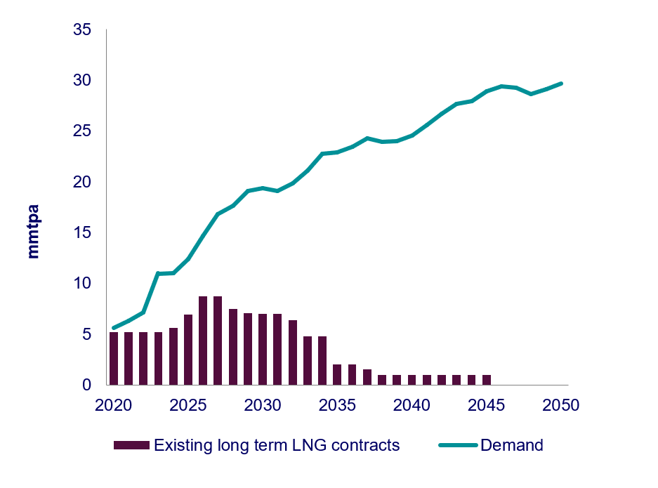 รายงานของวู้ด แมกเคนซี ชี้ว่าในปี 2567 จะเกิดการขาดแคลนก๊าซธรรมชาติเหลว (LNG) ของคู่สัญญาในไทยกว่า 5 ล้านตันต่อปี (mmtpa) ซึ่งหมายความว่า 50% ของการนำเข้า LNG จะต้องพึ่งพาการจัดซื้อซึ่งมีราคาผันผวนมากขึ้น
