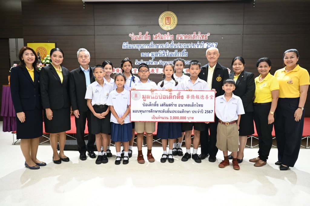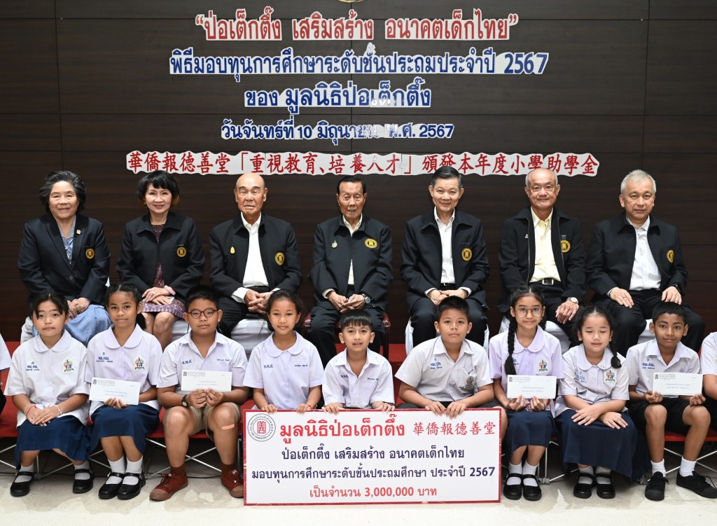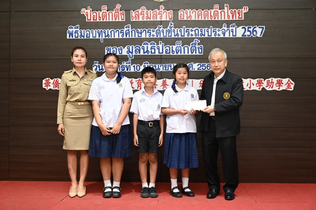 วันนี้ (วันจันทร์ที่ 10 มิถุนายน 2567 เวลา 10.00 น.) มูลนิธิป่อเต็กตึ๊ง นำโดย นายวิเชียร เตชะไพบูลย์ ประธานกรรมการมูลนิธิฯ เป็นประธานในพิธี พร้อมด้วย นายวิรุฬ เตชะไพบูลย์ ที่ปรึกษาประธานกรรมการ นายวิชิต ชินวงศ์วรกุล รองประธานกรรมการ นางศิริกุล โอภาสวงศ์ กรรมการและเลขาธิการ คณะกรรมการ และผู้ช่วยกรรมการการมูลนิธิฯ ร่วมในพิธีมอบเงินทุนการศึกษาระดับชั้นประถม ประจำปี พ.ศ. 2567 ให้แก่เยาวชนที่ประพฤติดีแต่ขาดแคลนทุนทรัพย์ จำนวน 1,500 ทุนๆ ละ 2,000 บาท รวมเป็นจำนวนทั้งสิ้น 3,000,000 บาท (สามล้านบาทถ้วน) เพื่อช่วยเหลือให้เยาวชนที่ขาดแคลนทุนทรัพย์ได้มีโอกาสเท่าเทียม สามารถศึกษาเล่าเรียนต่อโดยไม่ต้องยุติการศึกษาเพราะขาดแคลนทุนทรัพย์ และเติบโตสร้างอนาคตตามความมุ่งหวังของตนเองและครอบครัวต่อไป โดยมี เยาวชน และผู้แทนจากสถาบันการศึกษา เป็นผู้รับมอบ ณ ห้องประชุมชั้น 2 อาคาร 2 มูลนิธิป่อเต็กตึ๊ง พลับพลาไชย กรุงเทพฯ