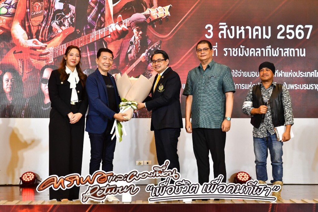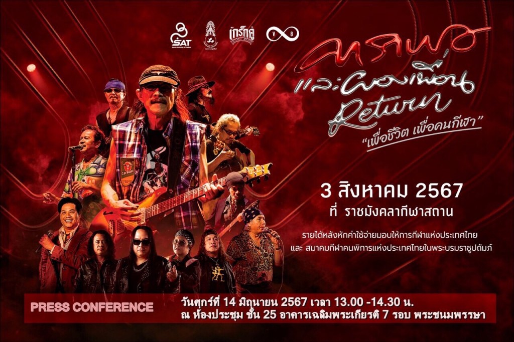 แถลงข่าว คอนเสิร์ต “คาราบาว และผองเพื่อน รีเทิร์น” เพื่อชีวิต เพื่อคนกีฬา แฟนเพลงวงคาราบาว เตรียมเฮ !!! ปลุกตำนานเพลงเพื่อชีวิตที่อยู่ในใจของคนไทยทุกคน กำลังจะกลับมาอีกครั้ง กับเส้นทางมิตรภาพที่ยาวนานกว่า 4 ทศวรรษ ของผองเพื่อนศิลปินเพลงที่ยังรัก เชื่อมั่น ศรัทธา และจะไม่มีวันเปลี่ยนไป พร้อมขึ้นเวทีราชมังคลากีฬาสถาน ในรอบ 25 ปี ปรากฏการณ์สุดยิ่งใหญ่กว่าทุกครั้ง ของวงคาราบาว ที่มาพร้อมผองเพื่อนพี่น้องศิลปิน ร้องเล่นบรรเลงในคอนเสิร์ตประวัติศาสตร์คนดนตรีที่จะต้องบันทึกไว้..โดยมี ดร.ก้องศักด ยอดมณี (ผู้ว่าการการกีฬาแห่งประเทศไทย) พร้อมด้วย คุณไมตรี คงเรือง (นายกสมาคมกีฬาคนพิการแห่งประเทศไทยในพระบรมราชูปถัมภ์ ,คุณพัฒน์ชรัช รัตนศุทธพบูลย์(ที่ปรึกษา บริษัท บัวทอง เอ็กซ์ซิบิชั่น กรุ๊ป จำกัด) เจ้าของผลิตภัณฑ์ เกร็กคู ,คุณรัสรินทร์ ชัยสิทธิ์กิติกุล (กรรมการผู้จัดการ บริษัท วิคทอรี่ เอท จำกัด) ,คุณโปรดปราน สมานมิตร (รองผู้ว่าการการกีฬาแห่งประเทศไทย ฝ่ายส่งเสริมกีฬา ฝ่ายส่งเสริมกีฬา) ,คุณณัฏฐชัย ณครแก้ว ประธานที่ปรึกษาบริษัท วิคทอรี่ เอท จำกัด ,คุณยุธยา จีนหีต (ผู้อำนวยการฝ่ายธุรกิจกีฬา การกีฬาแห่งประเทศไทย) ,คุณทอม ดันดี ตัวแทนศิลปิน ตลอดจนตัวแทนนักกีฬาทีมชาติไทย ร่วมด้วย เณชญา ปันยารชุน ( DJ เอื้อง) และ ธีระชาติ ธีระวิทยากุล (อู๊ด เป็นต่อ) รับหน้าที่พิธีกรในงาน ณ ห้องประชุม ชั้น 25 อาคารเฉลิมพระเกียรติฯ การกีฬาแห่งประเทศไทย