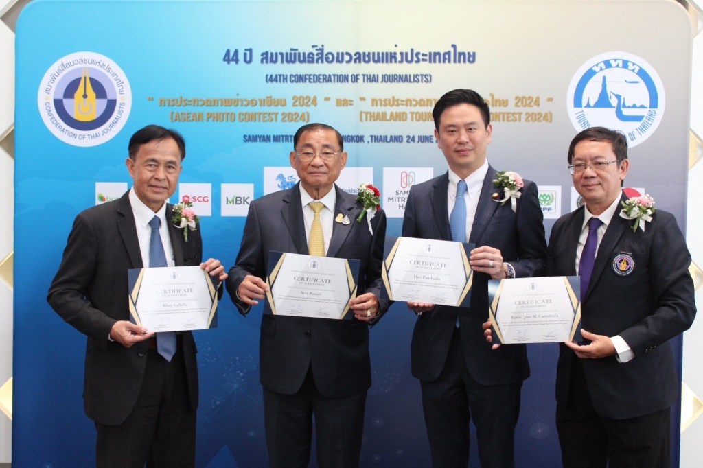 ช่างภาพไทยคว้ารางวัล รองชนะเลิศอันดับ 1 ใน “การประกวดภาพข่าวอาเซียน 2024” จัดโดยสมาพันธ์สื่อมวลชนแห่งประเทศไทย เชิญ รมว.การท่องเที่ยวและกีฬา เป็นประธานมอบรางวัล “การประกวดภาพข่าวอาเซียน 2024” และ“การประกวดภาพท่องเที่ยวไทย 2024” มีสื่อมวลชนในอาเซียนและไทย เข้าร่วมงาน