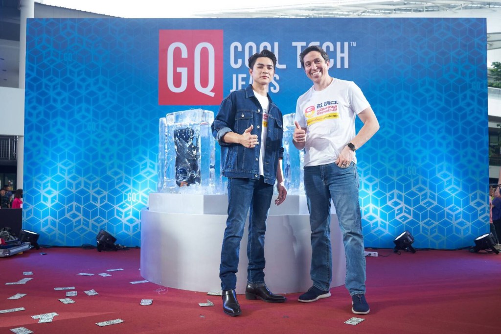 GQ COOL TECH JEANS กางเกงยีนส์เย็น ไอเทมแห่งปี ที่เป็นมากกว่าเครื่องแต่งกาย แต่ยังตอบโจทย์การสวมใส่ในชีวิตประจำวัน ช่วยรับมือกับสภาพอากาศประเทศไทย ซึ่งถูกจัดอันดับเป็นประเทศที่อุณหภูมิร้อนพุ่งสูงติดอันดับต้น ๆ ของโลก GQ มุ่งพัฒนาผลิตภัณฑ์เพื่อตอกย้ำคอนเซ็ปต์ ยึดความต้องการลูกค้าเป็นหลัก มีจุดเด่นด้านการพัฒนากางเกงยีนส์เย็นที่ผสานระหว่างเทคโนโลยีเนื้อผ้าสุดล้ำ กับนวัตกรรมเจลเย็น Cool Tech เข้ากับดีไซน์ที่ทันสมัย ให้สอดรับกับเทรนด์ และไลฟ์สไตล์การแต่งกายผู้ชายไทยยุคใหม่อย่างลงตัว พร้อมมั่นใจกับคุณภาพการผลิตโดยผ้ายีนส์คุณภาพสูง มีความทนทาน และตัดเย็บอย่างประณีตอย่างมีเอกลักษณ์ที่ไม่เหมือนใคร โดดเด่นกับเส้นใยแบบเกลียวที่ยืดหยุ่นแต่ไม่ย้วย ช่วยระบายอากาศได้ดี แห้งไว ไม่เหนียวเหนอะหนะ ให้ความรู้สึกสบายตัวตลอดวันแม้ในสภาพอากาศร้อนอบอ้าว สัมผัสความเย็นฉ่ำทันทีที่สวมใส่ บริเวณขาด้านใน สามารถช่วยลดอุณหภูมิลงได้สูงสุดถึง 2 องศาเซลเซียส ให้ความรู้สึกเย็นสบายแม้ในวันที่อากาศร้อนจัด ขานรับความต้องการเฉพาะตัวของตลาดยีนส์ไทย