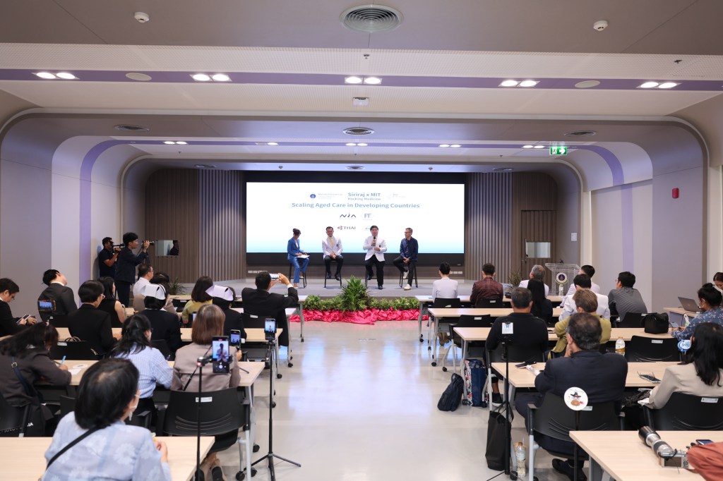 เมื่อเร็ว ๆ นี้ 2 สถาบันผู้นำระดับนานาชาติ จัดงานแถลงข่าวเปิดตัวโครงการ “Siriraj x MIT Hacking Medicine” ภายใต้หัวข้อ ‘Scaling Aged Care in Developing Countries’ ณ ห้องประชุมสิรินธร ชั้น G อาคารเฉลิมพระเกียรติ โรงพยาบาลศิริราช กรุงเทพฯ ท่ามกลางสื่อมวลชนและผู้สนใจเข้าร่วมงานอย่างคับคั่ง ภายในงานได้รับเกียรติจาก ศ. นพ.อภิชาติ อัศวมงคลกุล คณบดีคณะแพทยศาสตร์ศิริราชพยาบาล มหาวิทยาลัยมหิดล ศ. ดร. นพ.ยงยุทธ ศิริวัฒนอักษร ผู้อำนวยการโรงพยาบาลศิริราช และ ศ. เซน ชู (Prof. Zen Chu) ผู้อำนวยการ MIT Hacking Medicine Initiative และ Harvard-MIT Health Sciences & Technology Program ร่วมให้ข้อมูลความร่วมมือครั้งสำคัญ พร้อมถกปัญหาผู้สูงอายุ หนึ่งในปัญหาใหญ่ระดับโลกในปัจจุบันและอนาคต