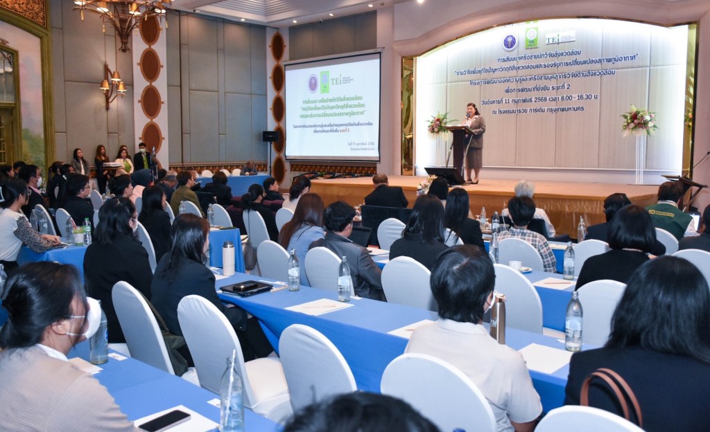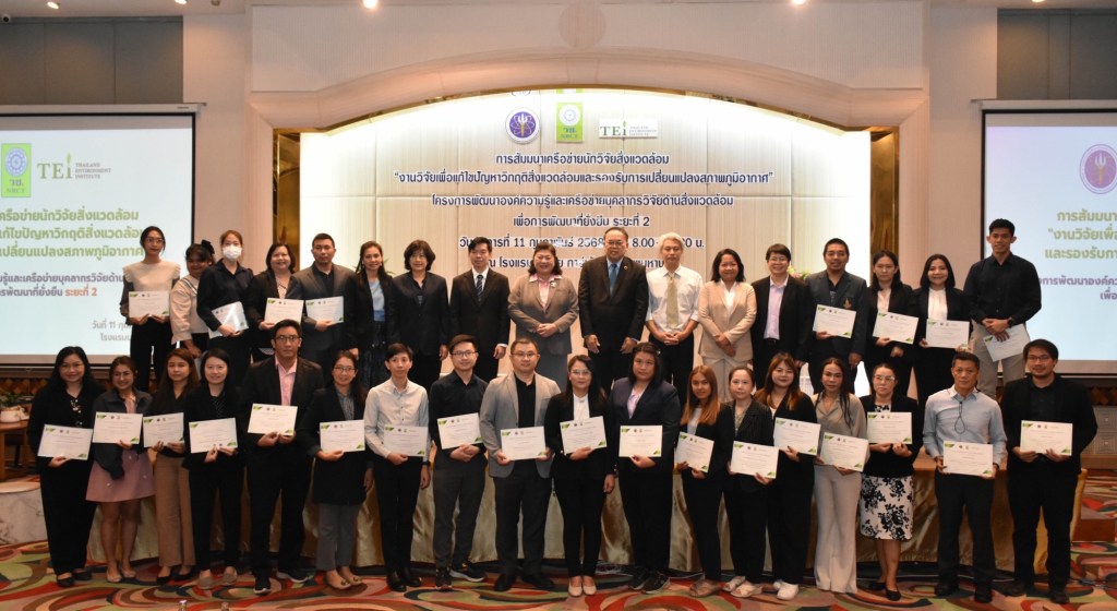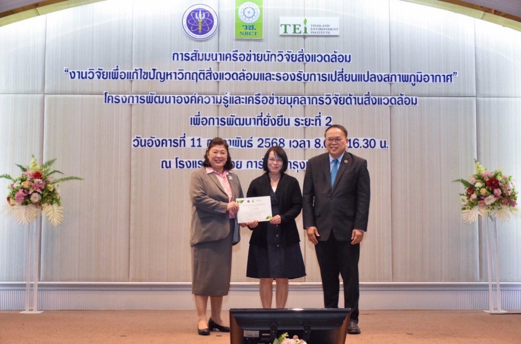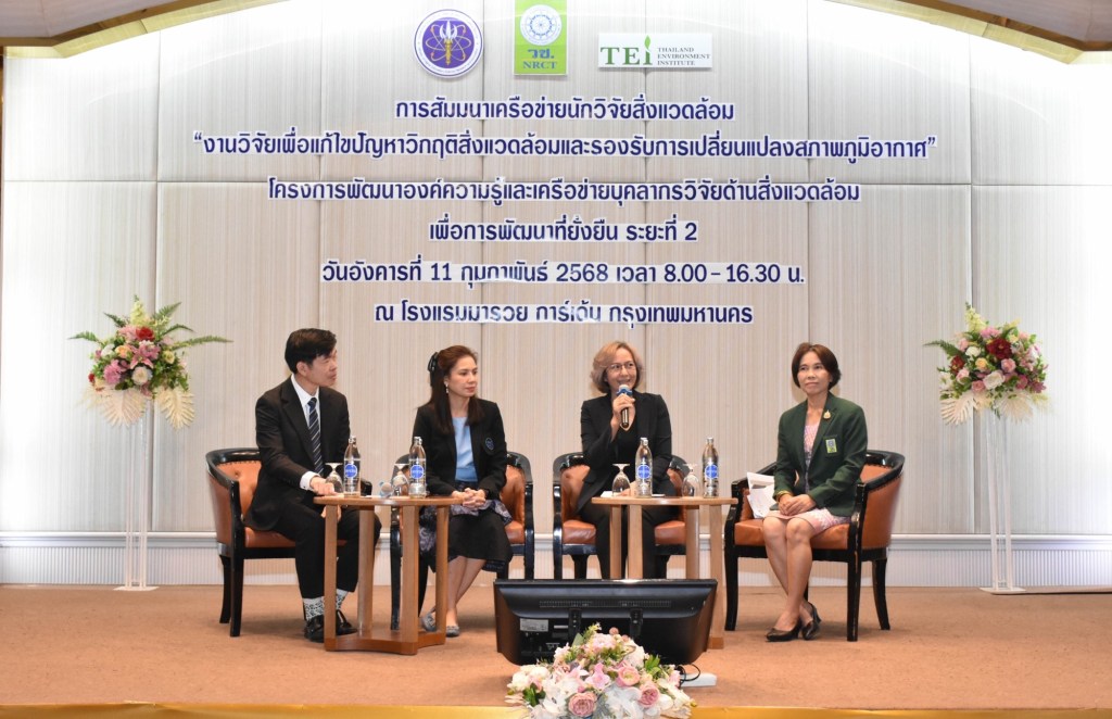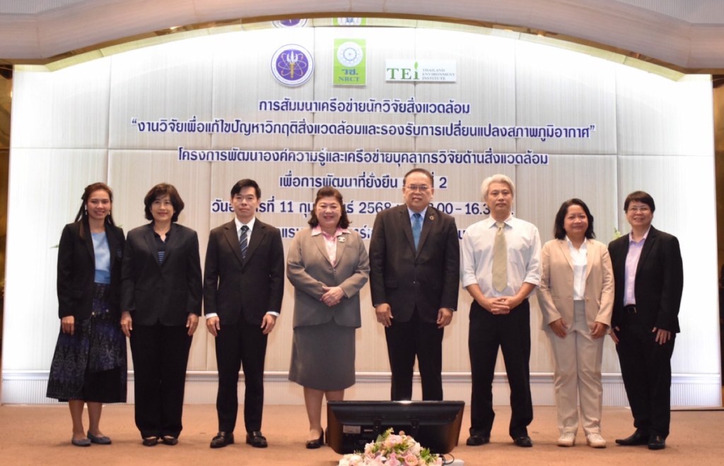 11 กุมภาพันธ์ 2568 – สำนักงานการวิจัยแห่งชาติ (วช.) กระทรวงการอุดมศึกษา วิทยาศาสตร์ วิจัยและนวัตกรรม ร่วมกับ สถาบันสิ่งแวดล้อมไทย (TEI) จัดสัมมนาเครือข่ายนักวิจัยสิ่งแวดล้อม ภายใต้หัวข้อ “งานวิจัยเพื่อแก้ไขปัญหาวิกฤติสิ่งแวดล้อม และรองรับการเปลี่ยนแปลงสภาพภูมิอากาศ” ภายใต้ “โครงการพัฒนาองค์ความรู้และเครือข่ายบุคลากรวิจัยด้านสิ่งแวดล้อมเพื่อการพัฒนาที่ยั่งยืน ระยะที่ 2” โดยมี ดร. วิภารัตน์ ดีอ่อง ผู้อำนวยการสำนักงานการวิจัยแห่งชาติ เป็นประธานกล่าวเปิดการสัมมนา พร้อมด้วย ดร.วิจารย์ สิมาฉายา ผู้อำนวยการสถาบันสิ่งแวดล้อมไทย กล่าวรายงานและสรุปผลการดำเนินโครงการฝึกอบรม และได้รับเกียรติจาก ศาสตราจารย์ ดร.สนิท อักษรแก้ว ที่ปรึกษาในสภาพัฒนาเศรษฐกิจและสังคมแห่งชาติและประธานกรรมการดำเนินงานสนับสนุนการวิจัยและนวัตกรรม ประเด็นเป้าหมายด้านการพัฒนาสุขภาพ สังคม และสิ่งแวดล้อมสำนักงานการวิจัยแห่งชาติ บรรยายพิเศษในหัวข้อ “ การนำงานวิจัยไปใช้ประโยชน์ในการพัฒนาประเทศ” ณ โรงแรมมารวย การ์เด้น กรุงเทพฯ โดยเน้นการพัฒนาองค์ความรู้และเสริมศักยภาพเครือข่ายนักวิจัยให้สามารถผลิตงานวิจัยที่ตอบสนองต่อแผนพัฒนาประเทศและการแก้ไขปัญหาสิ่งแวดล้อมอย่างเป็นรูปธรรม