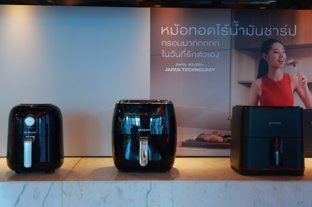 3. หม้อทอดไร้น้ำมัน SHARP รุ่น 4.2 ลิตร , 6.8 ลิตร และ 7 ลิตร ตอบโจทย์ไลฟ์สไตล์การทำอาหารของครอบครัวยุคใหม่ ที่เน้นความสะดวก เร็ว ง่าย แต่ยังได้สุขภาพที่ดี หม้อทอดไร้น้ำมัน SHARP มีระบบ RAPID AIR CIRCULATION ลมร้อนหมุนเวียนทั่วถึง 360° จึงทำให้อาหารสุกเร็ว กรอบ อร่อยทันใจ ไม่ต้องใช้น้ำมัน สะดวกแค่ปลายนิ้วสัมผัสด้วยโปรแกรมปรุงอาหารอัตโนมัติที่มีให้เลือกถึง 8 โปรแกรม และตะกร้าทอดเคลือบสารกันอาหารติด ทำความสะอาดง่าย มีให้เลือก 3 ขนาด 4.2 ลิตร , 6.8 ลิตร และ 7 ลิตร เหมาะกับครอบครัวทุกขนาด ตั้งแต่ครอบครัวเล็กถึงครอบครัวใหญ่