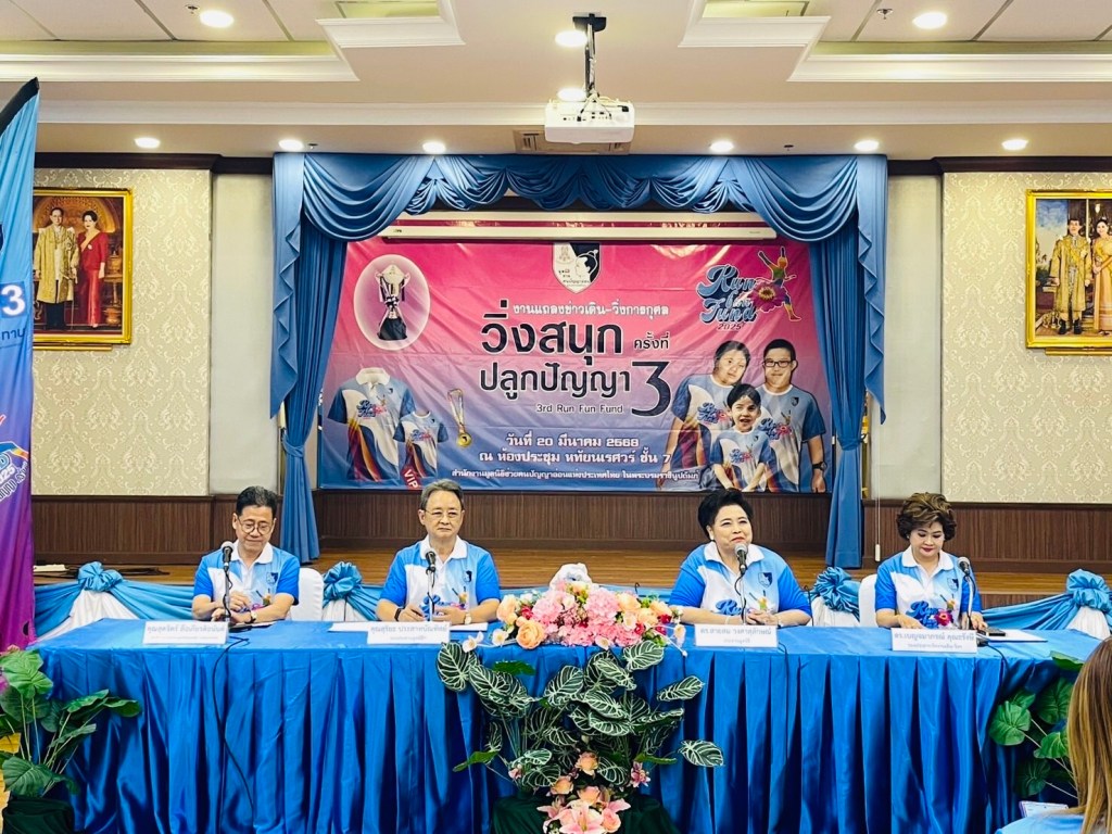 วันที่ 20 มีนาคม 2568 เวลา 13.30 น. มูลนิธิช่วยคนปัญญาอ่อนแห่งประเทศไทย ในพระบรมราชินูปถัมภ์ จัดงานแถลงข่าว เดิน – วิ่งการกุศล “วิ่งสนุกปลูกปัญญา ครั้งที่ 3” (3rd Run Fun Fund) ณ ห้องประชุมหทัยนเรศวร์ มูลนิธิช่วยคนปัญญาอ่อนแห่งประเทศไทย ในพระบรมราชินูปถัมภ์ โดยมี ดร.สายสม วงศาสุลักษณ์ ประธานมูลนิธิช่วยคนปัญญาอ่อนแห่งประเทศไทย ในพระบรมราชินูปถัมภ์และที่ปรึกษางานวิ่งสนุกปลูกปัญญา ครั้งที่ 3 คุณสุริยะ ประสาทบัณฑิตย์ รองประธานมูลนิธิฯ ดร.เบญจมาภรณ์ คุณะรังษี รองประธานจัดงาน และคุณสุดจิตร์ ลือเกียรติอนันต์ เลขาธิการและรองประธานสมาพันธ์ชมรมเดิน – วิ่งเพื่อสุขภาพไทย ร่วมแถลงข่าว