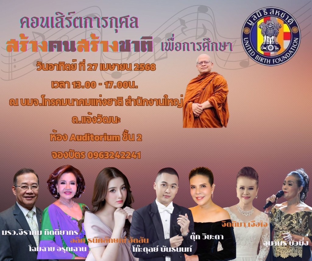 พระชายกลาง อภิญาโณ ประธานมูลนิธิสหชาติ เปิดเผยว่า ในเวลา 13.00-17.00 น. วันอาทิตย์ที่ 27 เมษายนนี้ ที่ห้องออดิทอเรียม สำนักงานใหญ่บมจ.โทรคมนาคมแห่งชาติ แจ้งวัฒนะ กทม. มูลนิธิสหชาติและพันธมิตร จะจัดคอนเสิร์ตการกุศล สร้างคน สร้างชาติ เพื่อนำรายได้ที่หักค่าใช้จ่ายแล้ว เป็นทุนการศึกษาให้เด็กด้อยโอกาสและเด็กในถิ่นทุรกันดารให้ได้เรียนต่อจนถึงระดับปริญญาตรี และใช้ในกิจกรรมสาธารณะประโยชน์ต่างๆของมูลนิธิ อย่างเช่น การปลูกหญ้าให้ช้างป่าในพื้นที่ที่มีความขัดแย้งระหว่างช้างป่ากับเกษตรกร และการช่วยเหลือเจ้าหน้าที่ป่าไม้ของกรมอุทยานฯ โดยม.ร.ว.จิราคม กิติยากร หรือที่รู้จักกันในนามเอลวิสเมืองไทย และคุณโฉมฉาย อรุณฉาน เลขาธิการสมาคมนักร้องแห่งประเทศไทย ในพระบรมราชูปถมภ์ อดีตนักร้องวงดนตรีสุนทราภรณ์ และวงดนตรีกรมประชาสัมพันธ์ รับอาสาเป็นผู้ดำเนินการในการจัดคอนเสิร์ตครั้งนี้