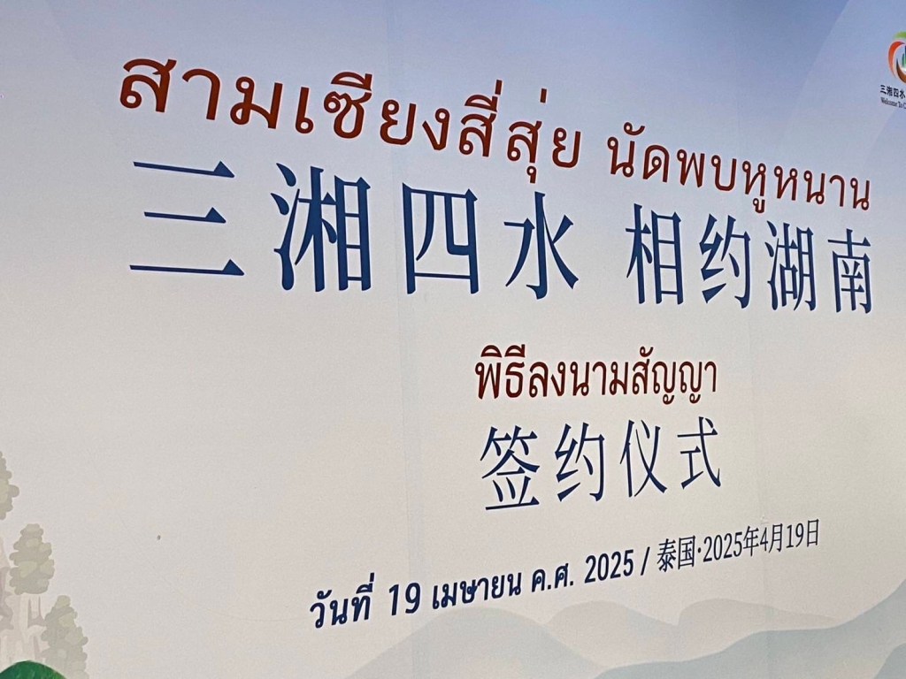 ภายหลังการสัมมนา ผู้แทนกรมวัฒนธรรมและการท่องเที่ยวมณฑลหูหนาน บริษัทท่องเที่ยวของจีน และสมาคมไทยบริการท่องเที่ยว ได้ร่วมลงนามในโครงการความร่วมมือด้านการท่องเที่ยวเชิงวัฒนธรรมจีน-ไทย เพื่อส่งเสริมการท่องเที่ยวของประชาชนสองประเทศให้แน่นแฟ้นยิ่งขึ้น