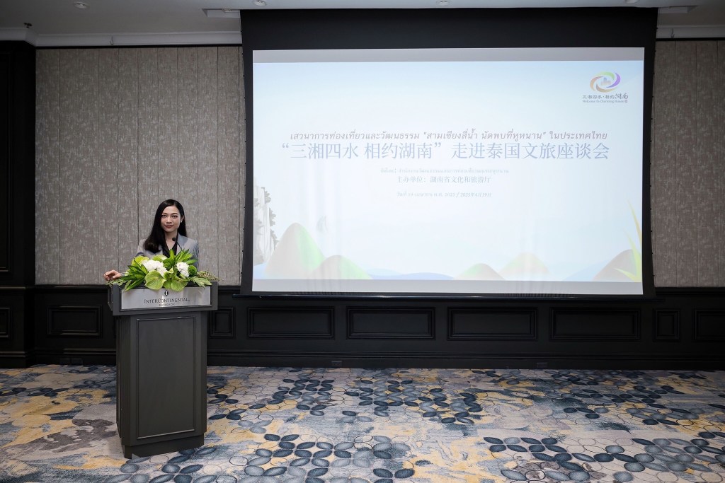 คุณฉาง ยู่ เหมิง กล่าวว่า มณฑลหูหนานมีประวัติศาสตร์อันยาวนาน อุดมไปด้วยวัฒนธรรม มีทัศนียภาพที่งดงาม และมีแหล่งทรัพยากรด้านวัฒนธรรมและการท่องเที่ยวที่พรั่งพร้อม เป็นจุดหมายปลายทางยอดนิยมสำหรับนักท่องเที่ยวชาวไทยที่เดินทางไปจีน ไม่ว่าจะเป็นอุทยานธรรมชาติจางเจียเจี้ย ที่มีขุนเขาสูงตระหง่าน ทะเลสาบตงถิงอันกว้างใหญ่ หรือสถานที่สำคัญทางประวัติศาสตร์และวัฒนธรรม เช่น หอเย่ว์หยางและเมืองโบราณเฟิ่งหวง ล้วนเป็นที่ชื่นชอบของเพื่อนชาวไทย ปัจจุบัน มณฑลหูหนานกำลังส่งเสริมการใช้เทคโนโลยีเพื่อยกระดับและมุ่งมั่นที่จะสร้างให้เป็นจุดหมายปลายทางการท่องเที่ยวระดับโลก