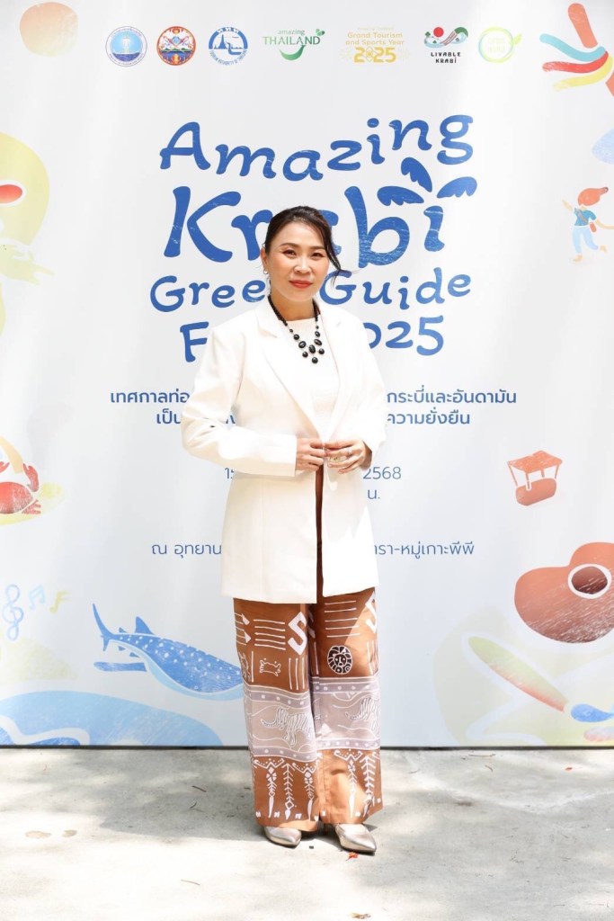 นางจิระวดี คุณทรัพย์ รองด้านตลาดยุโรป อเมริกา ตะวันออกกลาง และแอฟริกา กล่าวว่า “งาน Amazing Krabi Green Guide Fest 2025 ถือเป็นหนึ่งในกิจกรรมภายใต้โครงการ Krabi Prototype ที่ ททท. ร่วมกับพันธมิตรภาครัฐและเอกชนตลอดห่วงโซ่อุปทานการท่องเที่ยวในการยกระดับจังหวัดกระบี่สู่การเป็นพื้นที่ต้นแบบจุดหมายปลายทางแห่งความยั่งยืน เพื่อผลักดันแนวคิด Sustainable Tourism ที่โลกปัจจุบันให้ความสำคัญแก่อุตสาหกรรมท่องเที่ยวไทยให้พัฒนาสู่ความยั่งยืนอย่างเป็นรูปธรรม ทั้งการมุ่งหน้ายกระดับผู้ประกอบการด้วยการส่งเสริมให้ผู้ประกอบการ ชุมชนท่องเที่ยว เจ้าของแหล่งท่องเที่ยวในจังหวัดกระบี่ เข้าสู่การรับรองตามเกณฑ์ความยั่งยืนของ ททท. ได้แก่ Sustainable Tourism Acceleration Rating (STGs STAR), CF-Hotels และรางวัลอุตสาหกรรมการท่องเที่ยวไทย รวมถึงการเข้าสู่มาตรฐานความยั่งยืนในระดับสากล ได้แก่ Green Destinations Top 100 Stories และ Tourism Cares โดยสำหรับงาน Amazing Krabi Green Guide Fest 2025 ที่จัดขึ้นในครั้งนี้ เป็นเทศกาลท่องเที่ยวเชิงอนุรักษ์ที่มุ่งสู่การเป็น CARBON NEUTRAL EVENT โดยจะเปลี่ยนการเดินทางท่องเที่ยวให้สร้างผลกระทบเชิงบวกต่อชุมชน สิ่งแวดล้อม และเศรษฐกิจฐานรากในระดับท้องถิ่น โดยเฉพาะ ในจังหวัดกระบี่ที่มีความพร้อม ทั้งทรัพยากรธรรมชาติที่งดงาม เอกลักษณ์ทางวัฒนธรรม และความร่วมมืออย่างเข้มแข็งของทุกภาคส่วน งานในครั้งนี้ออกแบบให้เชื่อมโยงกับแนวคิด 7 Greens และ 5 Must Do in Thailand เพื่อส่งเสริมประสบการณ์ท่องเที่ยวที่มีคุณค่า และสร้างความเข้าใจใหม่ ๆ ให้แก่นักท่องเที่ยว เพื่อสร้างแรงบันดาลใจในการมีส่วนร่วมในการอนุรักษ์สิ่งแวดล้อมและร่วมขับเคลื่อนกระบี่สู่อนาคตแห่งการท่องเที่ยวอย่างยั่งยืน”