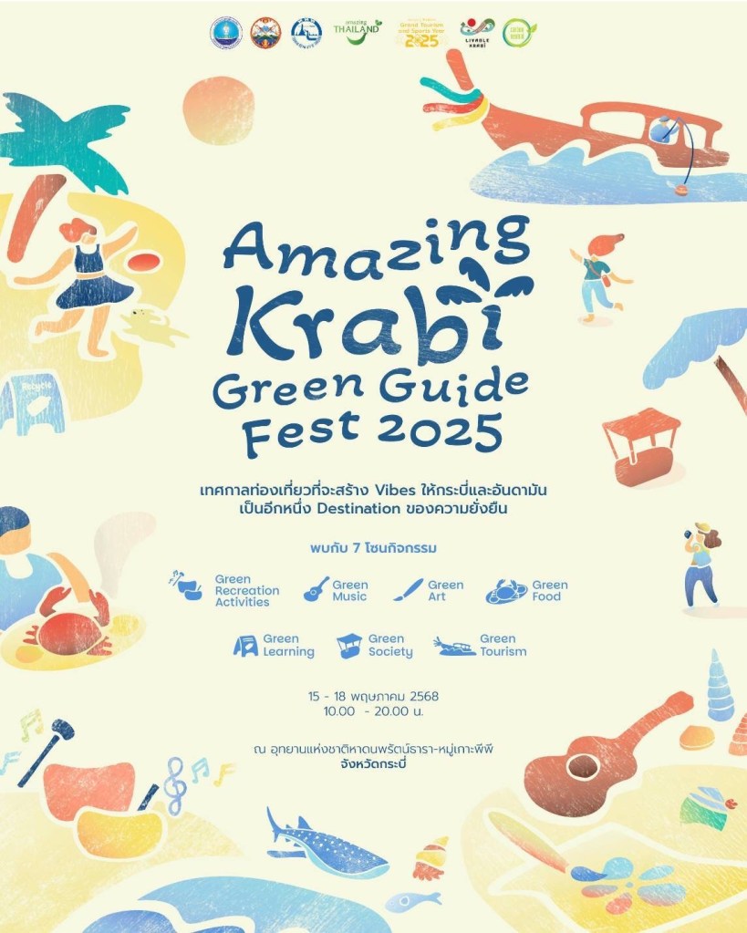 การท่องเที่ยวแห่งประเทศไทย (ททท.) ร่วมกับจังหวัดกระบี่ และพันธมิตรทั้งภาครัฐและเอกชน เตรียมจัดงาน “Amazing Krabi Green Guide Fest 2025” เทศกาลท่องเที่ยวเชิงอนุรักษ์ ในวันที่ 15 – 18 พฤษภาคม 2568 ณ อุทยานแห่งชาติหาดนพรัตน์ธารา–หมู่เกาะพีพี จังหวัดกระบี่ ชูแนวคิด Green Vibes และ Eco-Friendly Event สร้างแรงบันดาลใจให้นักท่องเที่ยวร่วมขับเคลื่อนกระบี่สู่ “อนาคตแห่งการท่องเที่ยวอย่างยั่งยืน” พร้อมผนึกกำลังพันธมิตรภาครัฐและเอกชนในพื้นที่ มุ่งยกระดับจังหวัดกระบี่สู่การเป็นพื้นที่ต้นแบบจุดหมายปลายทางสีเขียวอย่างยั่งยืนในระดับสากล