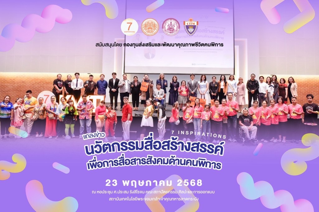 สถาบันเทคโนโลยีพระจอมเกล้าเจ้าคุณทหารลาดกระบัง (สจล.) จัดงานแถลงข่าวเพื่อร่วมขับเคลื่อนโครงการ “นวัตกรรมสื่อสร้างสรรค์ เพื่อการสื่อสารสังคมด้านคนพิการ: 7 INSPIRATIONS (Phase 3)” ซึ่งเป็นโครงการที่ได้รับทุนสนับสนุนปีงบประมาณ 2568 จากกองทุนส่งเสริมและพัฒนาคุณภาพชีวิตคนพิการ กรมส่งเสริมและพัฒนาคุณภาพชีวิตคนพิการ กระทรวงการพัฒนาสังคมและความมั่นคงของมนุษย์ จัดขึ้น ณ หอประชุม ศ.ประสม รัง สิโรจน คณะสถาปัตยกรรม ศิลปะและการออกแบบ สจล.