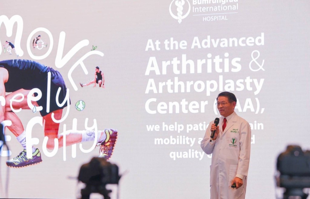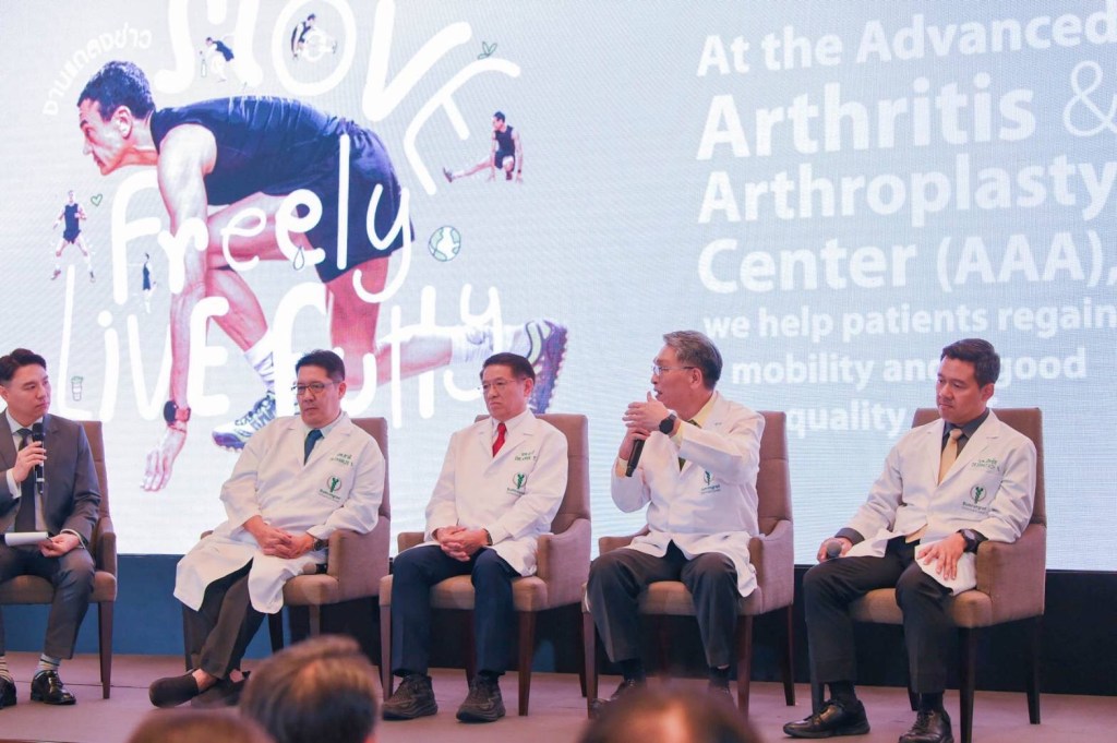 คุณแบร์รี่ วอล์ฟแมน Senior Executive Director of Operations โรงพยาบาลบำรุงราษฎร์ ได้กล่าวเปิดงานแถลงข่าว “Move Freely, Live Fully”At the Advanced Arthritis & Arthroplasty Center (AAA), we help patients regain mobility and a good quality of life โดยเน้นย้ำถึงสถานการณ์ในประเทศไทยที่ก้าวเข้าสู่สังคมผู้สูงวัยอย่างสมบูรณ์ ด้วยสัดส่วนผู้สูงอายุสูงถึง 20.7% ของประชากร หรือคิดเป็น 13.65 ล้านคน ทำให้โรคข้อเสื่อม ซึ่งสัมพันธ์กับอายุที่เพิ่มขึ้น กลายเป็นปัญหาสำคัญที่ทวีความรุนแรงขึ้น หนึ่งในโรคที่พบบ่อยในกลุ่มผู้สูงวัยคือ “ข้อเสื่อม” โดยเฉพาะที่ข้อเข่าและข้อสะโพก แม้โรคนี้จะไม่อันตรายถึงชีวิต แต่หากไม่ได้รับการรักษาที่เหมาะสม จะส่งผลกระทบอย่างมากต่อคุณภาพชีวิตของผู้ป่วย และด้วยความมุ่งมั่นที่จะคืนคุณภาพชีวิตที่ดีขึ้นให้กับผู้ป่วย โรงพยาบาลบำรุงราษฎร์จึงได้ก่อตั้ง “ศูนย์ข้อเสื่อมและข้อเทียมขั้นแอดวานซ์” โดยมี ศ.นพ. อารี ตนาวลี เป็นหัวหน้าศูนย์ฯ พร้อมด้วยทีมแพทย์ผู้เชี่ยวชาญระดับนานาชาติ และเทคโนโลยีที่ทันสมัย อาทิ หุ่นยนต์ช่วยผ่าตัด และเทคนิคการผ่าตัดแผลเล็กที่ผสานกับการคุมปวดแบบพิเศษ เพื่อมอบทางเลือกการรักษาที่ครอบคลุม ตั้งแต่ระยะเริ่มต้นไปจนถึงเคสยากและมีความซับซ้อนสูง