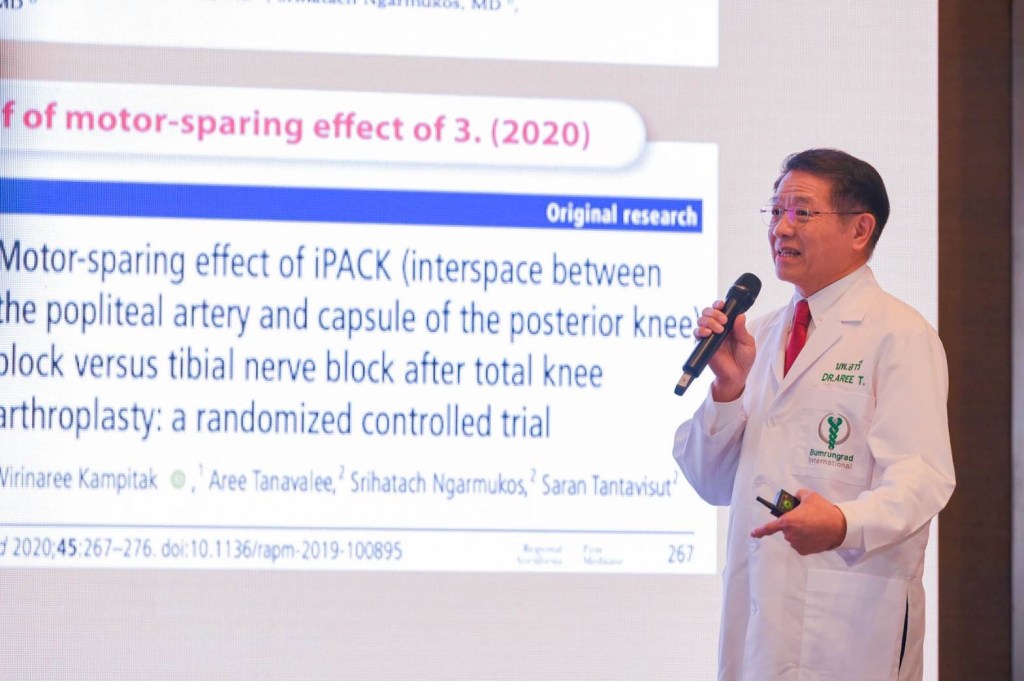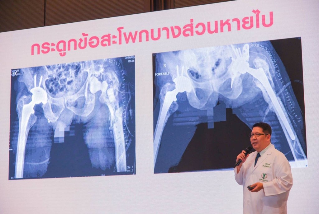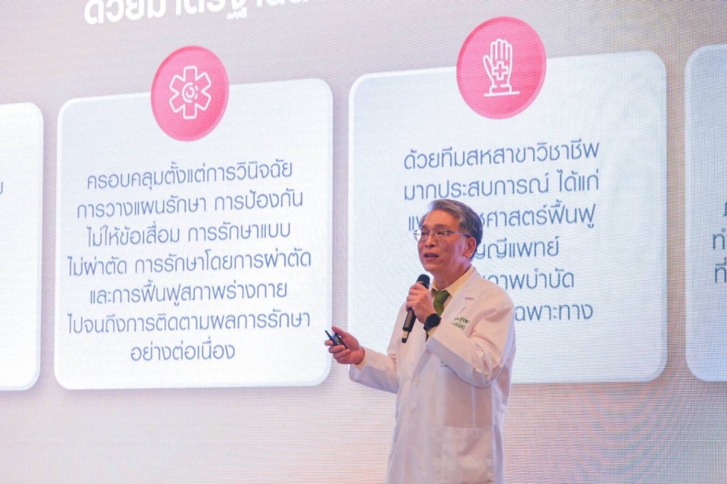 นพ. สุรพจน์ เมฆนาวิน แพทย์เฉพาะทางด้านศัลยศาสตร์กระดูกและข้อ การผ่าตัดเปลี่ยนข้อเทียม โรงพยาบาลบำรุงราษฎร์ กล่าวถึงแนวทางการดูแลผู้ป่วยแบบองค์รวมและเฉพาะบุคคล (Seamless Patients Journey and Personalized Care) ซึ่งครอบคลุมตั้งแต่การวินิจฉัยไปจนถึงการฟื้นฟูและติดตามผล เพื่อให้ผู้ป่วยปลอดภัย ฟื้นตัวไว ลดภาวะแทรกซ้อน และลดระยะเวลาการพักฟื้นในโรงพยาบาล ช่วยลดภาระค่าใช้จ่ายและความเครียดของผู้ป่วยได้อย่างมาก ผลลัพธ์ทางคลินิกที่โดดเด่นสะท้อนถึงคุณภาพการรักษา ไม่ว่าจะเป็น อัตราการติดเชื้อบริเวณแผลผ่าตัด เพียง 0.69% (เทียบกับโรงพยาบาลชั้นนำในสหรัฐอเมริกา 1.03%) อัตราการเกิดภาวะลิ่มเลือดอุดตันในหลอดเลือดดำระหว่างการรักษาในโรงพยาบาล อยู่ที่ 0.40% (เทียบกับโรงพยาบาลชั้นนำในสหรัฐอเมริกา 1.62%) และ อัตราการกลับมาผ่าตัดซ้ำภายใน 30 วัน อยู่ที่ 0% (เทียบกับโรงพยาบาลชั้นนำในสหรัฐอเมริกา 1.18%) นอกจากนี้ ทางศูนย์ฯ ยังมีเป้าหมายให้ผู้ป่วยสามารถลุกเดินด้วยตนเองโดยใช้อุปกรณ์ช่วยเดินในระยะทางอย่างน้อย 15 เมตร ภายใน 3 วันหลังการผ่าตัด ซึ่งทั้งหมดนี้แสดงให้เห็นถึงความมุ่งมั่นในการคืนคุณภาพชีวิตที่ดีที่สุดให้กับผู้ป่วยได้อย่างยั่งยืน