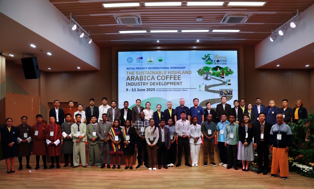 มูลนิธิโครงการหลวง ร่วมกับ สถาบันวิจัยและพัฒนาพื้นที่สูง (องค์การมหาชน) และ กรมความร่วมมือระหว่างประเทศ กระทรวงการต่างประเทศ (TICA) จัดการอบรมเชิงปฏิบัติการระดับนานาชาติ เรื่อง “การพัฒนาอุตสาหกรรมการปลูกและผลิตกาแฟบนพื้นที่สูง” The Sustainable Highland Arabica Coffee Industry Development