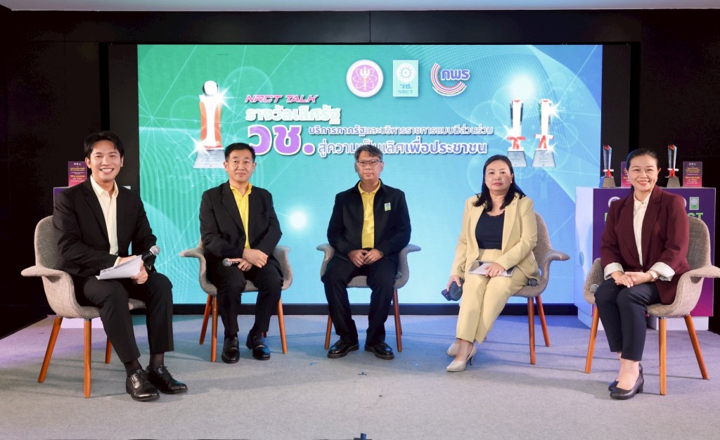 วันที่ 15 กันยายน 2568 สำนักงานการวิจัยแห่งชาติ(วช.) กระทรวงการอุดมศึกษา วิทยาศาสตร์ วิจัยและนวัตกรรม จัดกิจกรรมเสวนา NRCT Talk “รางวัลเลิศรัฐ วช. บริการภาครัฐและมีส่วนร่วม สู่ความเป็นเลิศเพื่อประชาชน” โดย ดร.วิภารัตน์ ดีอ่อง ผู้อำนวยการสำนักงานการวิจัยแห่งชาติ เป็นประธานกิจกรรม พร้อมด้วยท่านสุกัญญา ธีระกูรณ์เลิศ ประธานคณะทำงานดำเนินการขยายผลธนาคารปูม้า และอดีตเลขาธิการคณะกรรมการวิจัยแห่งชาติ และคณะผู้บริหาร วช. เข้าร่วมกิจกรรม พร้อมนำผลงานที่ได้รับรางวัลเลิศรัฐใน 3 สาขา ร่วมเสวนา เรื่อง “บริการภาครัฐและการมีส่วนร่วม สู่ความเป็นเลิศเพื่อประชาชน” ณ ศูนย์สารสนเทศกลางด้านวิทยาศาสตร์ วิจัยและนวัตกรรม อาคาร วช. 8
