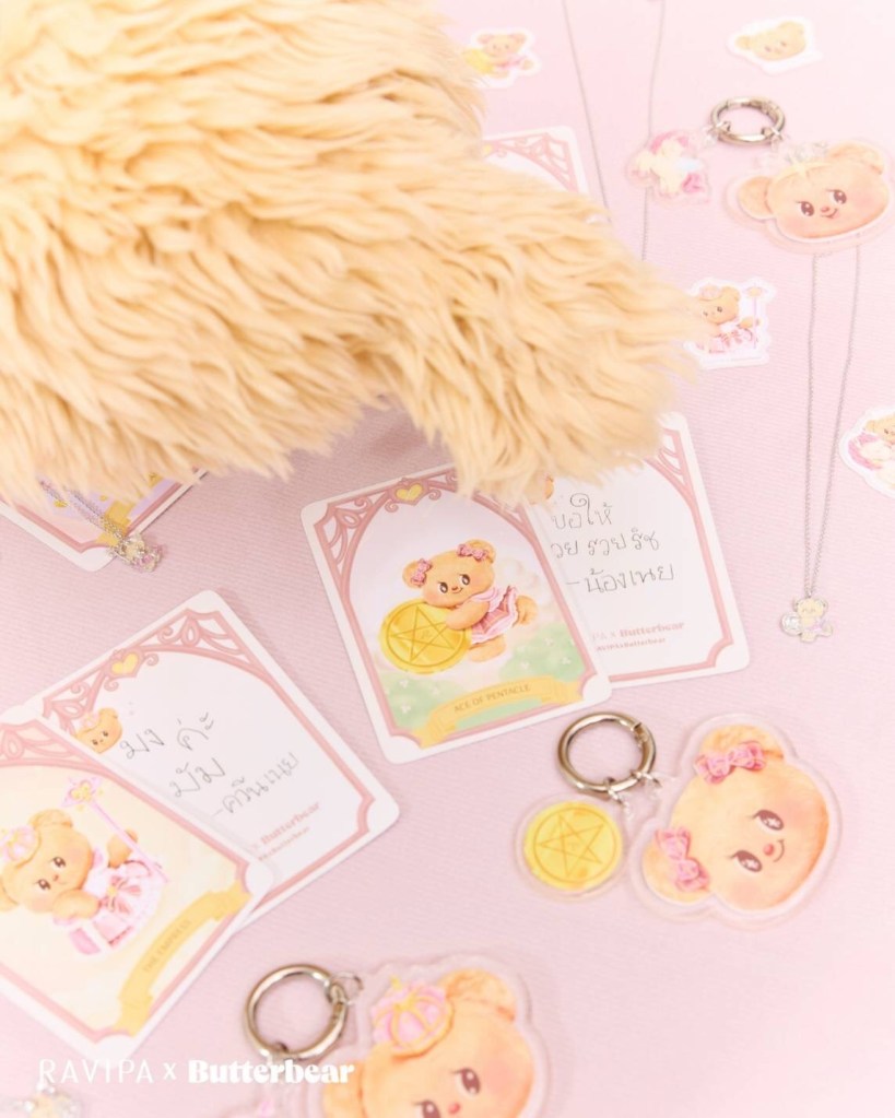 Buttertarot Collection ได้รับแรงบันดาลใจจากศาสตร์แห่งไพ่ทาโรต์ ถ่ายทอดความหมายลึกซึ้งผ่าน 5 สัญลักษณ์อันทรงพลัง ได้แก่ The Sun, The Empress, The Chariot, The Magician และ Ace of Pentacle ซึ่งแต่ละสัญลักษณ์สะท้อนพลังบวก ความสำเร็จ และความสมหวัง โดยเสริมด้วยอัญมณีแท้ที่เชื่อกันว่ามีพลังดึงดูดความรัก ความมั่งคั่ง และความสุข คอลเลคชั่นนี้นำเสนอทั้งในรูปแบบเครื่องประดับ อาทิ สร้อยข้อมือและสร้อยคอ ตลอดจนไลฟ์สไตล์ไอเทมที่สามารถพกพาความหมายอันงดงามและความสดใสของ Butterbear ไปในทุกวัน