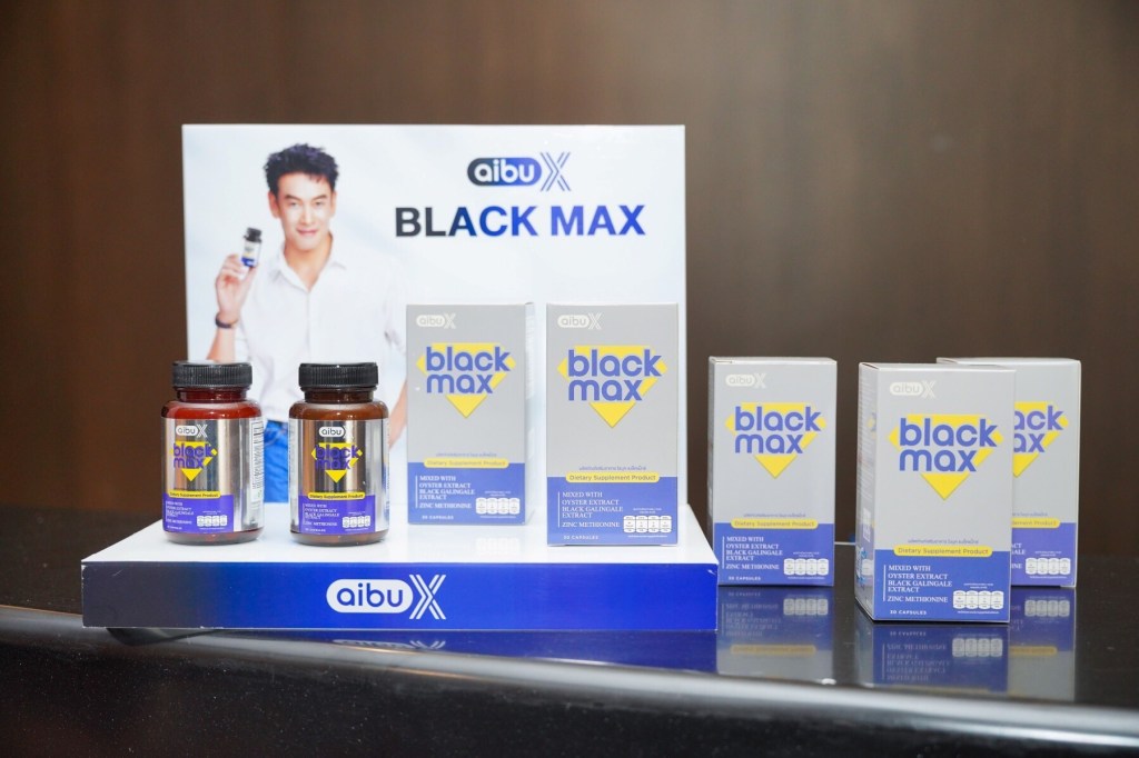 1)“aibuX Black Max” (ไอบุค แบล็คแม็กซ์) ผลิตภัณฑ์เสริมอาหารสำหรับดูแลสุขภาพผู้ชายแบบองค์รวมในรูปแบบแคปซูล ที่ทานบำรุงต่อเนื่องได้ทุกวัน วันละ 1 แคปซูล ผสานส่วนผสมจากธรรมชาติ 100% ทั้ง 6 ชนิด ได้แก่ กระชายดำเกรดวิจัย, สารสกัดหอยนางรม, แอล-อาร์จินีน, สารสกัดมะเขือเทศ, ซิงค์ เมทไธโอนีน รวมถึงสารสกัดจากพริกไทยดำ