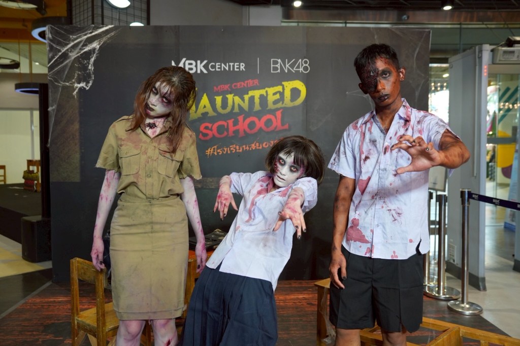 นายสมพล ตรีภพนารถ ประธานเจ้าหน้าที่บริหารธุรกิจศูนย์การค้า บริษัท เอ็ม บี เค จำกัด (มหาชน) กล่าวว่า “กิจกรรมแรกเพื่อเปิดตัวความร่วมมือกันระยะยาว ระหว่าง ศูนย์การค้าเอ็ม บี เค เซ็นเตอร์ และ BNK48 เรามีความยินดีเป็นอย่างยิ่งที่ได้ร่วมมือกับ BNK48 ในการสร้างปรากฏการณ์ใหม่ต้อนรับเทศกาลฮาโลวีนสุดพิเศษครั้งนี้กับกิจกรรม MBK Center Haunted School โรงเรียนสยองขวัญ โดยมีศิลปิน BNK48 มาร่วมสร้างสีสัน เติมเต็มความหลอนสุดแฟนตาซีให้กับแฟนคลับและผู้มาเยือน โดยได้เนรมิตพื้นที่ Meeting Point ชั้น G โซน A เปิดตำนานหลอนรอบรั้วโรงเรียนให้ทุกท่านมาสัมผัสประสบการณ์ความหลอนครั้งยิ่งใหญ่ที่ไม่เคยมีมาก่อน ระหว่างวันที่ 23 ตุลาคม – 2 พฤศจิกายน 2568 เราเชื่อมั่นว่าด้วยคอนเซ็ปต์โรงเรียนสยองขวัญที่ถูกออกแบบมาอย่างพิถีพิถัน ผสานกับภาพลักษณ์ของ BNK48 ไอดอลที่เป็นที่รักของคนรุ่นใหม่ทั่วประเทศ ที่ทุกคนสามารถมาพบได้ การปรากฏตัวของศิลปิน BNK48 ที่จะหมุนเวียนมาสร้างประสบการณ์สุดพิเศษ ให้ทุกคนได้สัมผัสประสบการณ์สุดสยองขวัญในคาบเรียน ภาคพิเศษ เชื่อว่าจะดึงดูดกลุ่มคนรุ่นใหม่และแฟนคลับให้มาร่วมสนุกและตื่นเต้นไปกับเรื่องราวสุดเฮี้ยนรอบรั้วโรงเรียนที่เราเตรียมไว้ได้อย่างแน่นอนครับ”